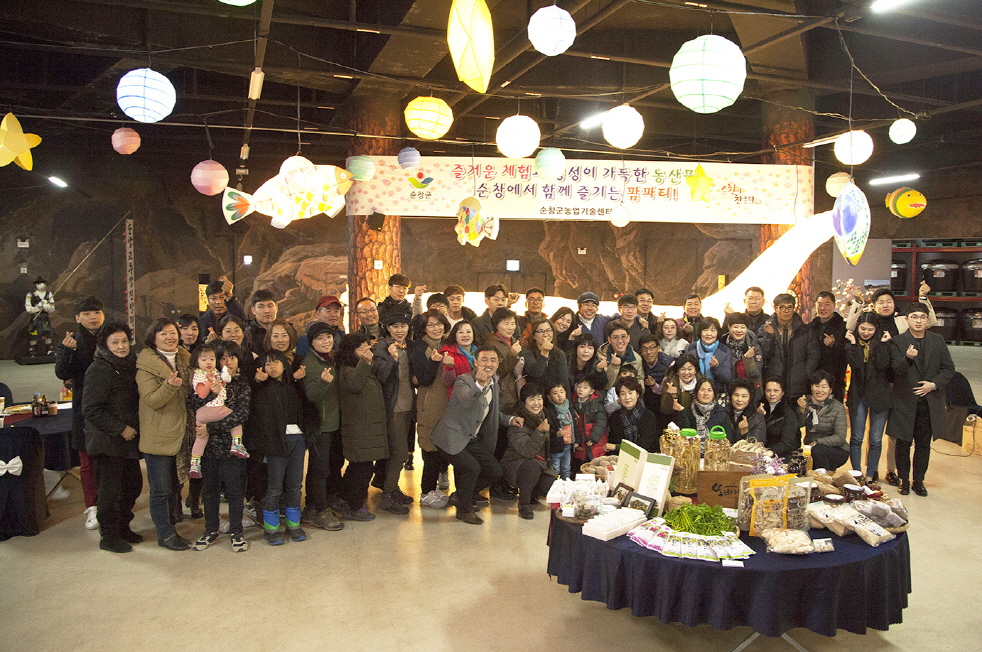 - 9일 농업 6차산업을 향한 순창농부들이 순창군 농산물 판매를 적극적으로 도와주는 소비자 80여명의 VIP 고객들을 초청해 발효소스토굴에서 팜파티를 개최했다.순창군농업기술센터와 6명의 농부들이 주최한 이번 팜파티는 명산 강천산 트레킹을 시작으로 해서 순창 맛집 투어와 농촌체험프로그램 체험 및 음악회 공연 등 다채롭게 진행해 큰 호응을 얻었다. -2017년 12월 11일-