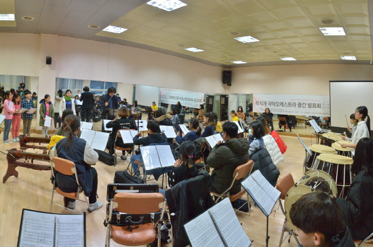 - 11일 청소년센터에서 다문화와 비단문화 청소년 40여명으로 구성된 국악오케스트라인 무지개오케스트라가 지난 6월 28일 창단 후 부모, 관계자 등 100여명을 초청해 공개수업을 진행했다.무지개오케스트라는 전라북도립국악원(원장신동원)과순창군(군수황숙주),순창교육지원청(교육장김택수),현대자동차전주공장(공장장문정훈)과노동조합(의장박종화)이후원하고 있다. -2017년 12월 11일-