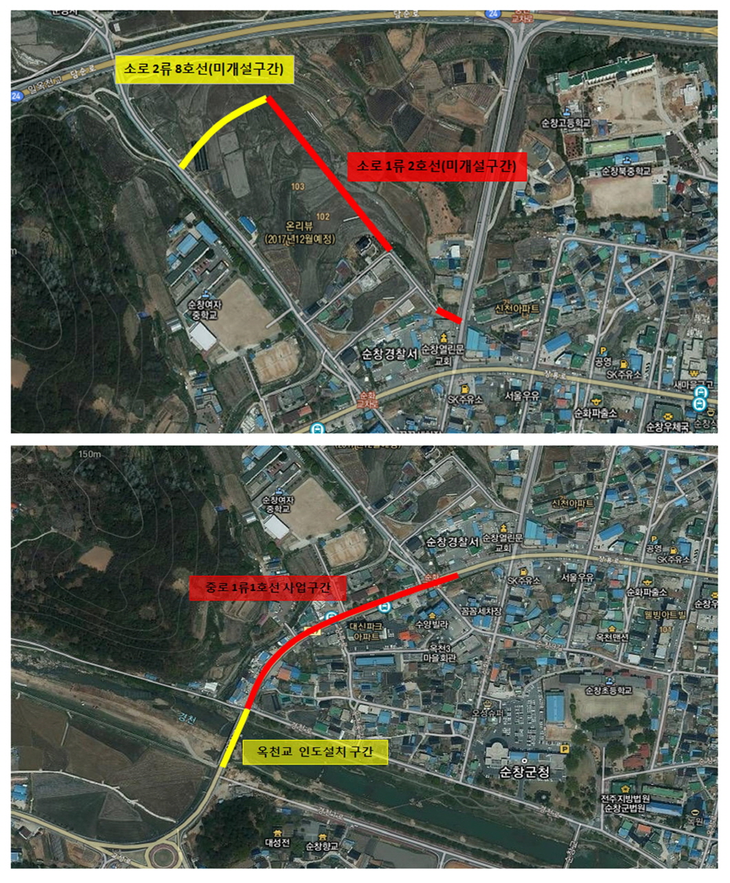 - 순창군은 내년에 28억을 투자해 온리뷰 아파트 주변 도로 개설과 순창경찰서에서 옥천교 도로확장사업을 진행 한다. 군은 내년에 온리뷰 아파트 맞은편 쪽으로 길이 377m 폭 8 ~ 10m 도로를 개설하고 순창경찰서에서 옥천교 까지 330m 구간도 15억을 투자해 기존 2차선에서 4차선으로 확장한다. -2017년 12월 12일-