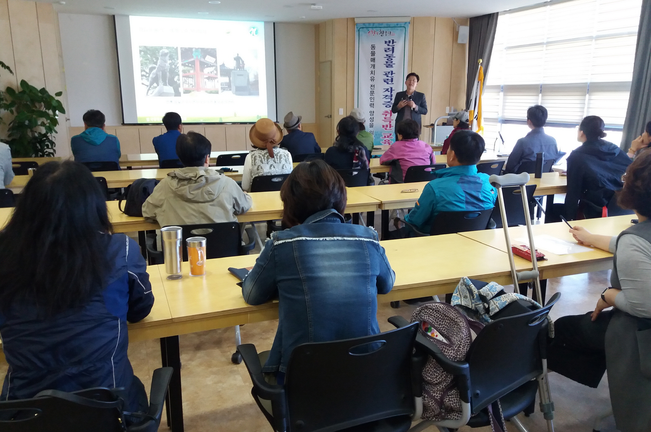 - 순창군농업기술센터에서 추진하는 반료동물 자격증 취득반 교육은 동물매개심리상당사 2급과, 반려동물관리사자격증 두개 과정이 인기를 끌고 있다.이번 교육은 지난 10월 16일 첫 강좌를 시작했으며 12월 18일까지 매주 월요일 5시간동안 총 10회로 진행된다. 당초 예정인원 25명을 넘어 29명의 수강생이 수강을 받고 있을 정도로 회가 갈수록 인기가 높아지고 있다. -2017년 11월 09일-