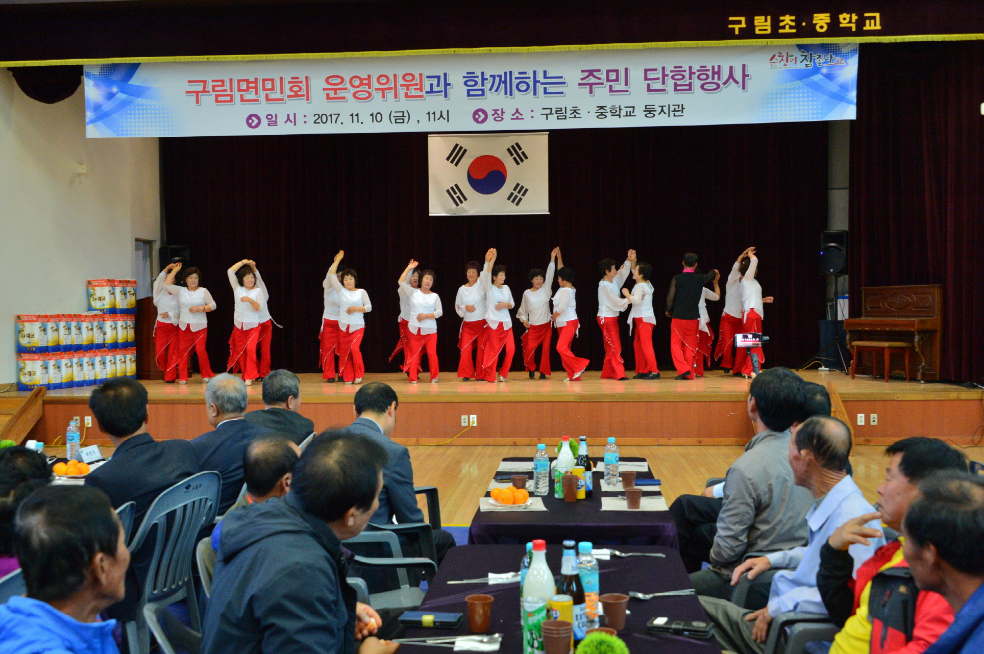 - 구림면민회 운영위원과 함께하는 구림면 단합대회가 10일 구림초중학교 강당에서 면민회 운영위원과 주민 등 200여명이 참석한 가운데 열렸다. 이날 구림면 주민자치위 스포츠댄스팀의 식전공연으로 김윤석 청년회장 감사패 수여 등 기념식과 마을별 노래자랑순으로 진행됐다. -2017년 11월 10일-