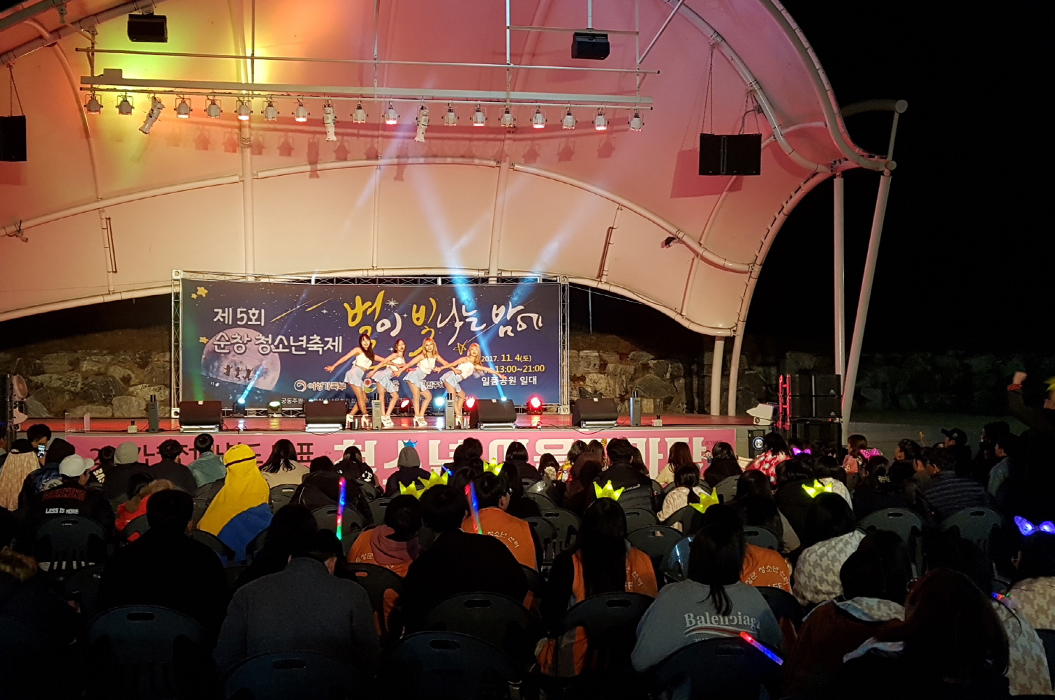 - 4일 순창읍 일품공원일원에서 ‘별이 빛나는 밤에’란 주제로 제5회 순창 청소년축제를 성대하게 마쳤다.이날 청소년축제는 특히 다양한 청소년 동아리 공연팀이 인기를 끌었다. 관내 동아리 7개팀은 물론 전주, 남원, 임실에서 온 3개팀의 축하공연도 축제를 빛나게 했다. 특히 여성댄스팀 ‘러브썸’에 대한 호응이 뜨거워 축제의 백미가 됐다. -2017년 11월 06일-