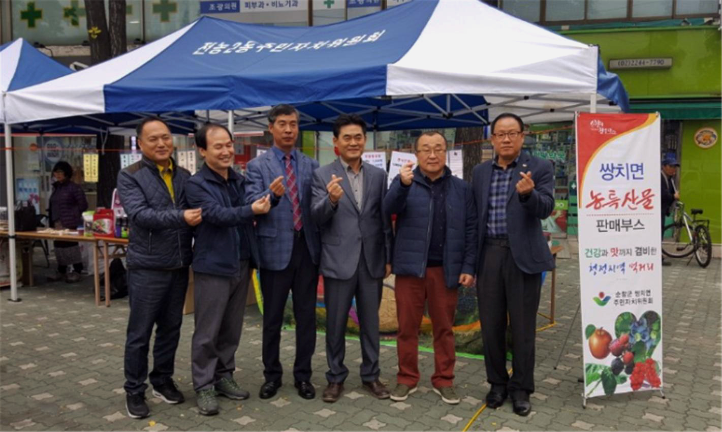- 쌍치면 주민자치위원회는 자매결연 자치단체인 서울 동대문구 전농2동에서 2일 하루 동안 농특산물 직거래장터를 운영했다.순창군 쌍치면 주민자치위원회는 우수한 지역농산물의 판로 확대 및 농가소득 증대를 통해 지역경제를 활성화하는 한편 자매결연 자치단체인 서울 동대문구 전농2동의 화합을 도모하기 위해 전농동 로터리에서 직거래장터를 운영했다. -2017년 11월 06일-