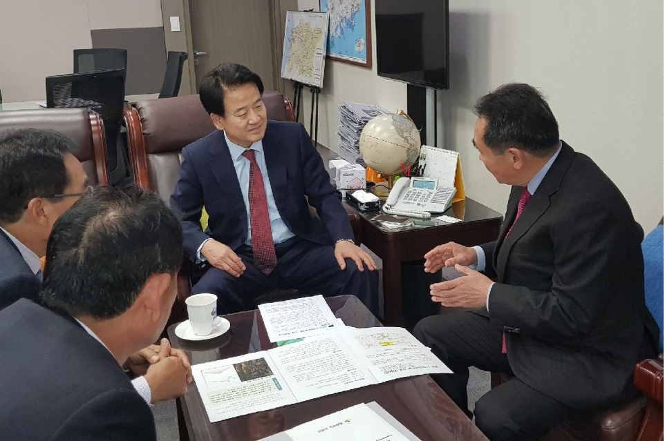 - 황숙주 군수는 7일 상임위별 예산심사가 한창인 국회를 방문하여 지역구 국회의원과 상임위 의원들을 잇따라 만나 예산확보를 위한 적극적인 지원과 협조를 요청했다.중점사업은 밤재터널 개설, 국립노화연구원설립, 대변은행, 방축입체교차로 변경설치 등 4건으로 황 군수는 먼저 양승조 보건복지위원장을 찾아 국립노화연구원설립을 위한 타당성 조사 및 기본계획 수립 용역비 2억원을 복지부 풀용역비에 추가로 증액해 줄 것을 강력히 건의했다. -2017년 11월 07일-