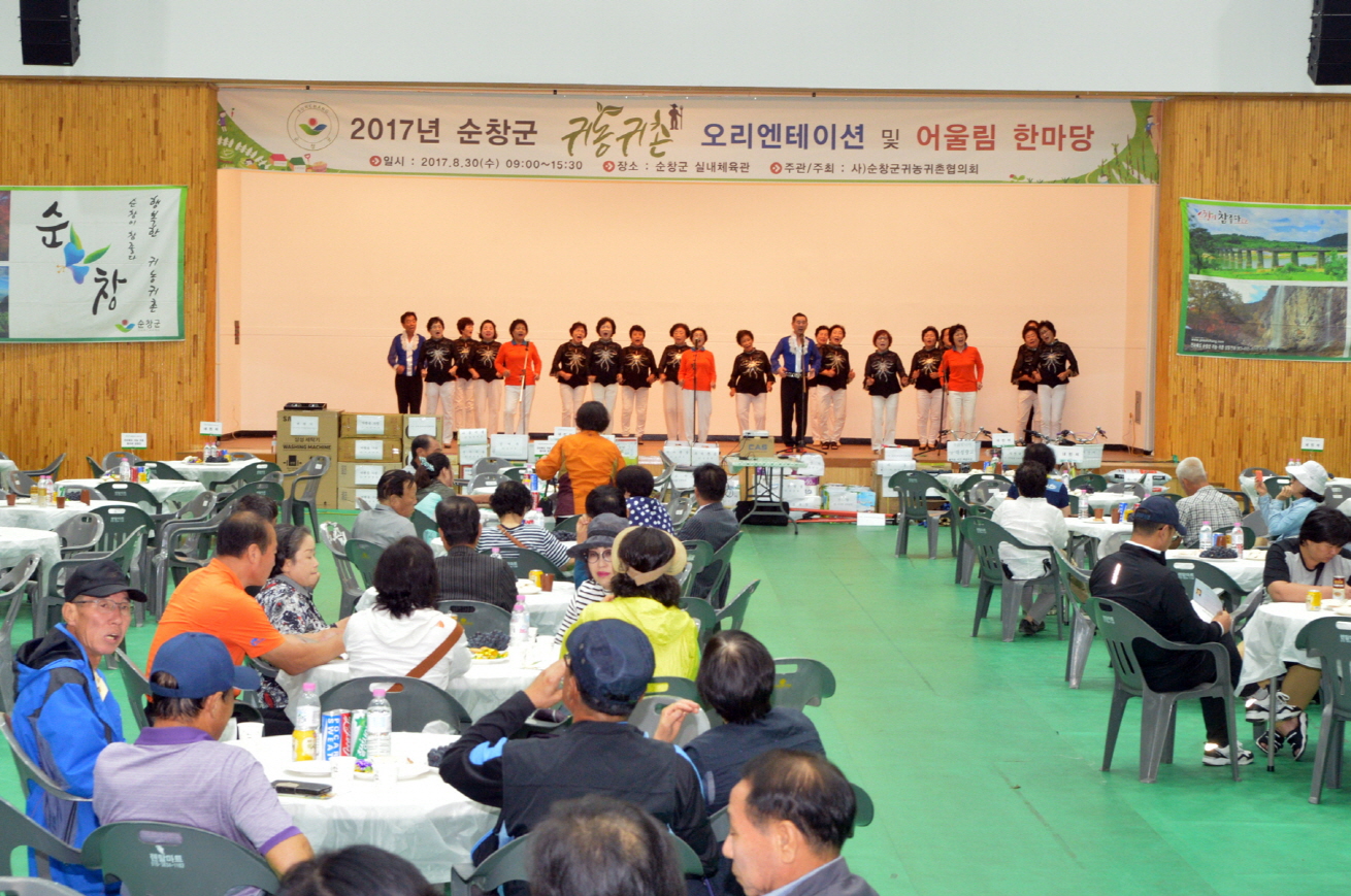 - 30일 귀농·귀촌인들이 한자리에 모여 제2의 고향 순창에서 귀농생활의 애환을 함께 나누고 소통하는 귀농귀촌협의회 어울림 한마당 행사가 국민체육센터에서 열렸다. (사)귀농귀촌협의회(회장 양환욱)가 주최한 이날 행사에는 황숙주 군수를 비롯한 귀농·귀촌인 300여명이 행사장을 가득 메웠다. -2017년 8월 30일-