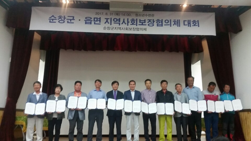 - 읍면 지역사회보장협의체의 활성화를 위한 순창군 지역사회보장협의체 대회가 31일 청소년수련관 2층 청소년 극장에서 열렸다.이날 행사에는 황숙주 순창군수, 김종섭 군의회 의장, 최영일 도의원, 권오준 군 지역사회보장협의체 공동 위원장과 협의체 및 복지위원 170여명이 참석해 대성황을 이뤘다. -2017년 8월 31일-
