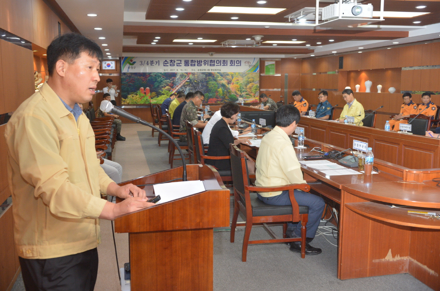 - 16일 군청 영상회의실에서 순창군 통합방위 협의회를 개최하고 2017년 을지연습의 성공적 수행을 위한 최종 점검을 마쳤다.이날 통합방위협의회는 김종섭 군의회의장과 신일섭 순창경찰서장, 정보묵 2대대장 등 위원 16명이 참여한 가운데 2017년 을지연습 준비상황보고, 군부대 을지연습 상황에 대한보고 등으로 진행됐다. -2017년 8월 16일-