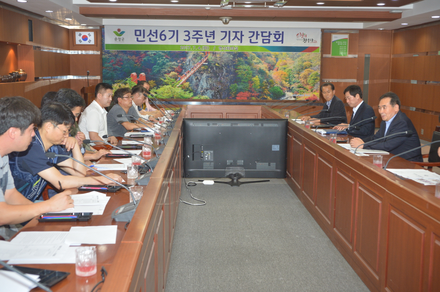 - 황숙주 군수는 4일 민선 6기 3주년을 맞아 군청 영상회의실에서 순창군 주재 기자간담회를 갖고 민선 6기 3주년의 성과와 계획을 설명했다.발효문화산업 투자선도지구 등 미래성장산업 기반 확보, 문화·관광·친환경 농업 성과 등 “민선 6기 3년의 성과를 바탕으로 문화가 넘실대고 군민이 잘사는 순창을 만들겠다” 그래서 “군민들이 순창에 살아서 참 행복하다”는 소리를 듣도록 하겠다.고 말했다. -2017년 7월 4일-