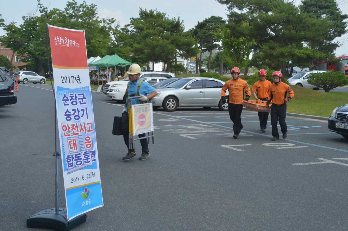 - 22일 순창군청 군청사와 광장에서 ‘2017년 승강기 사고 대응 합동훈련’을 실시해 혹시 모를 승가기 사고에 대한 대처 능력을 높였다.이번 합동훈련에는 군과 소방서는 물론 승강기 안전관리공단 유지관리업체 등이 참여한 민관합동훈련으로 진행돼 실질적 대처 능력향상에 큰 도움이 됐다. -2017년 6월 22일-
