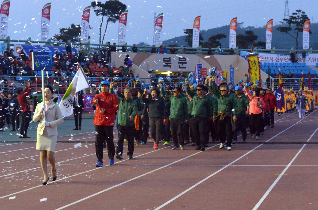 - 제54회 전북도민체전이 부안 스포츠테마파크 일원에서 28일부터 30일까지 3일간의 열전에 돌입했다.순창군 선수단은 26종목에 532명의 선수와 임원이 참가한 가운데 28일 저녁 입장식에서 두 번째로 입장하고 있다. -2017년 4월 28일-