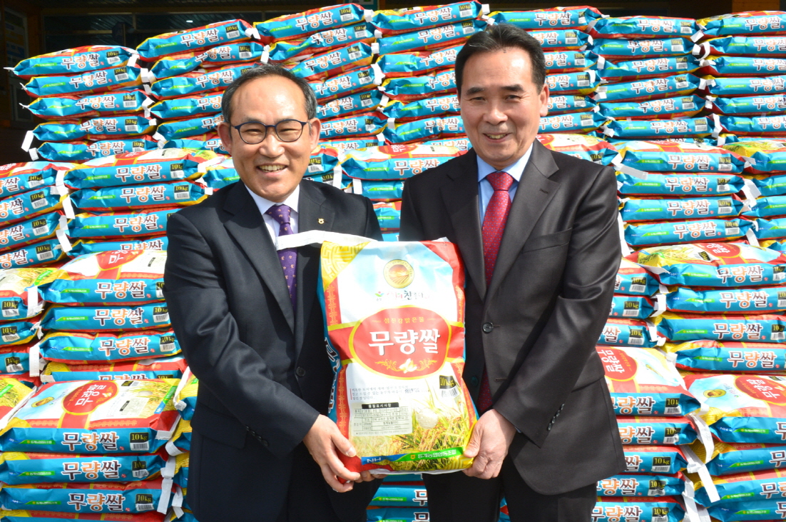- 농협은행순창군지부(지부장 한재현)에서 12일 관내 마을 경로당을 이용하는 어르신들을 위해 써달라며 쌀10kg 250포, 시가 250만원 상당을 전달해 따뜻한 이웃 사랑을 실천했다. 이날 한재현 지부장과 김영숙 지점장, 홍경완 군금고출장소장은 순창군청을 찾아 황숙주 군수에게 사랑의 쌀을 전달하였다. -2017년 4월 13일-