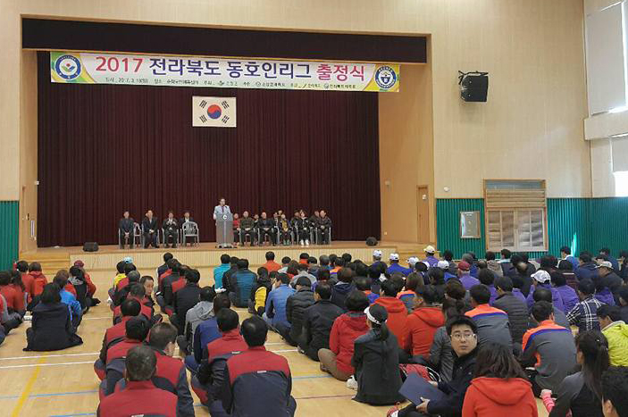 - 19일 순창군민체육센터에서 ‘2017 전라북도 동호인리그 출정식’을 갖고 선전을 다짐했다.이날 출정식에는 황숙주 군수와 김종섭 의장, 최영일 도의원, 각 종목단체 대표들과 선수 등 200여명이 참석해 성황을 이뤘다.올해 동호인리그는 축구, 야구, 배구, 배드민턴 등 8개의 정식종목과 시범종목인 풋살 등 총 9개 종목을 진행하며 8개월간 지역 예선을 거치게 된다. 지역 우승팀은 11월 고창에서 열리는 전라북도 동호인리그 왕중왕전에 지역을 대표해 참가하게 된다. -2017년 3월 20일-