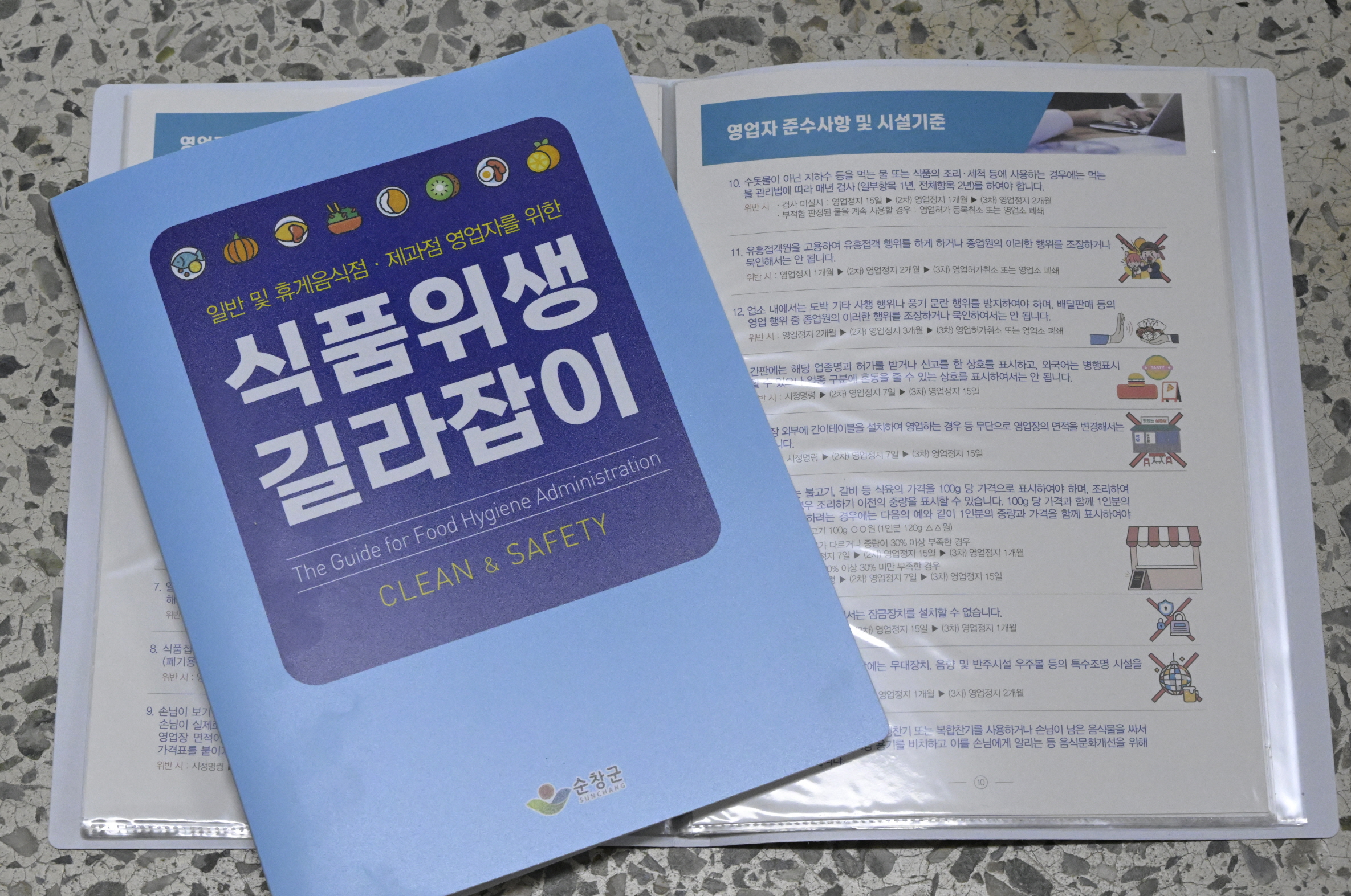 - 3일 순창군은 음식점 운영에 꼭 필요한 정보를 수록한 음식점 영업자를 위한 ‘식품위생 길라잡이’책자를 제작·배부한다. ‘식품위생 길라잡이’책자에는 ▲영업자 준수사항과 시설기준 ▲식중독 예방법 ▲재난배상책임보험 의무가입 ▲음식점 위생등급제 등 영업자의 위생관리 능력 향상과 안전한 먹거리를 위한 정보가 담겼다. -2025년 2월 3일-