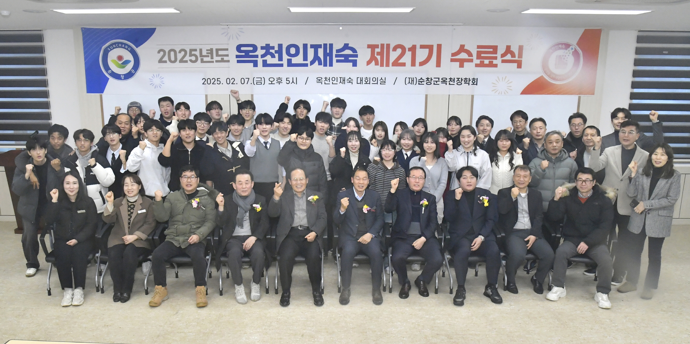 - 7일 (재)순창군옥천장학회(이사장 최영일 순창군수) 주관으로 옥천인재숙 제21기 입사생 수료식을 개최했다. 이번에 수료하는 36명의 학생 중 22명이 지역 내 학교와의 협력을 통해 수시 전형으로 대학에 합격했으며, 주요 진학 대학과 학과로는 △의대·치대·수의예과 3명 △수도권 주요 대학 5명(고려대, 이화여대, 아주대, 경희대, 숭실대) △지방 국립대 13명(전북대 등)이 있다. -2025년 2월 7일-