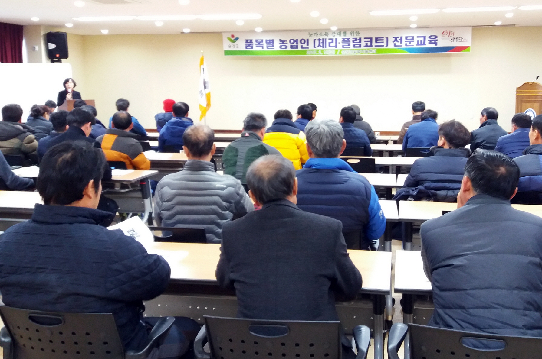 - 순창군은 기후변화에 대응하기 위한 신소득 작물로 체리, 플럼코트를 육성하기로 하고 지난 10일 농업기술센터에서 재배기술 교육을 실시했다.체리는 과일 중의 다이아몬드로 불리며 최근 소비시장이 확대되고 있다. 플럼코트는 최근 각광받는 과일로 자두와 살구를 중간 교잡한 새로운 작물이다. 단맛과 신맛의 조화로 인기를 끌며 최근 소비층이 확대되면서 인기를 끌고 있다. -2017년 2월 13일-