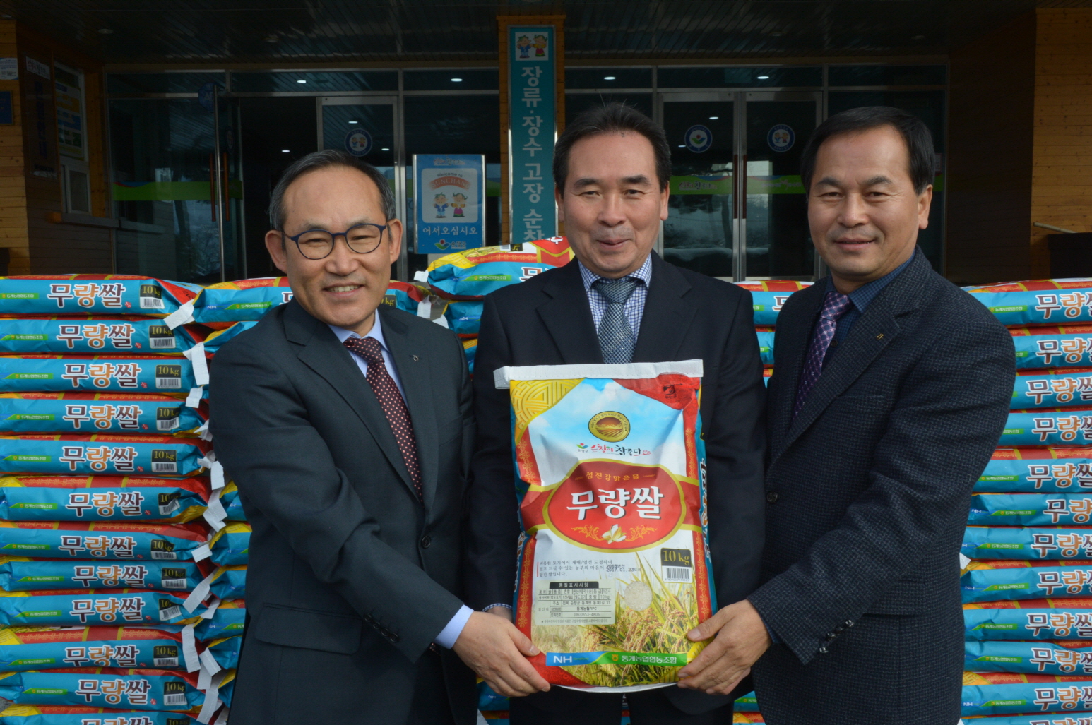- 23일 동계농협(조합장 양준섭)은 민족의 대명절인 설을 맞아 저소득층 어려운 이웃들에게 전달해 달라며 쌀 10kg, 300포(534만원 상당)를 황숙주 군수에게 전달하고 있다. 2017년 1월 23일-