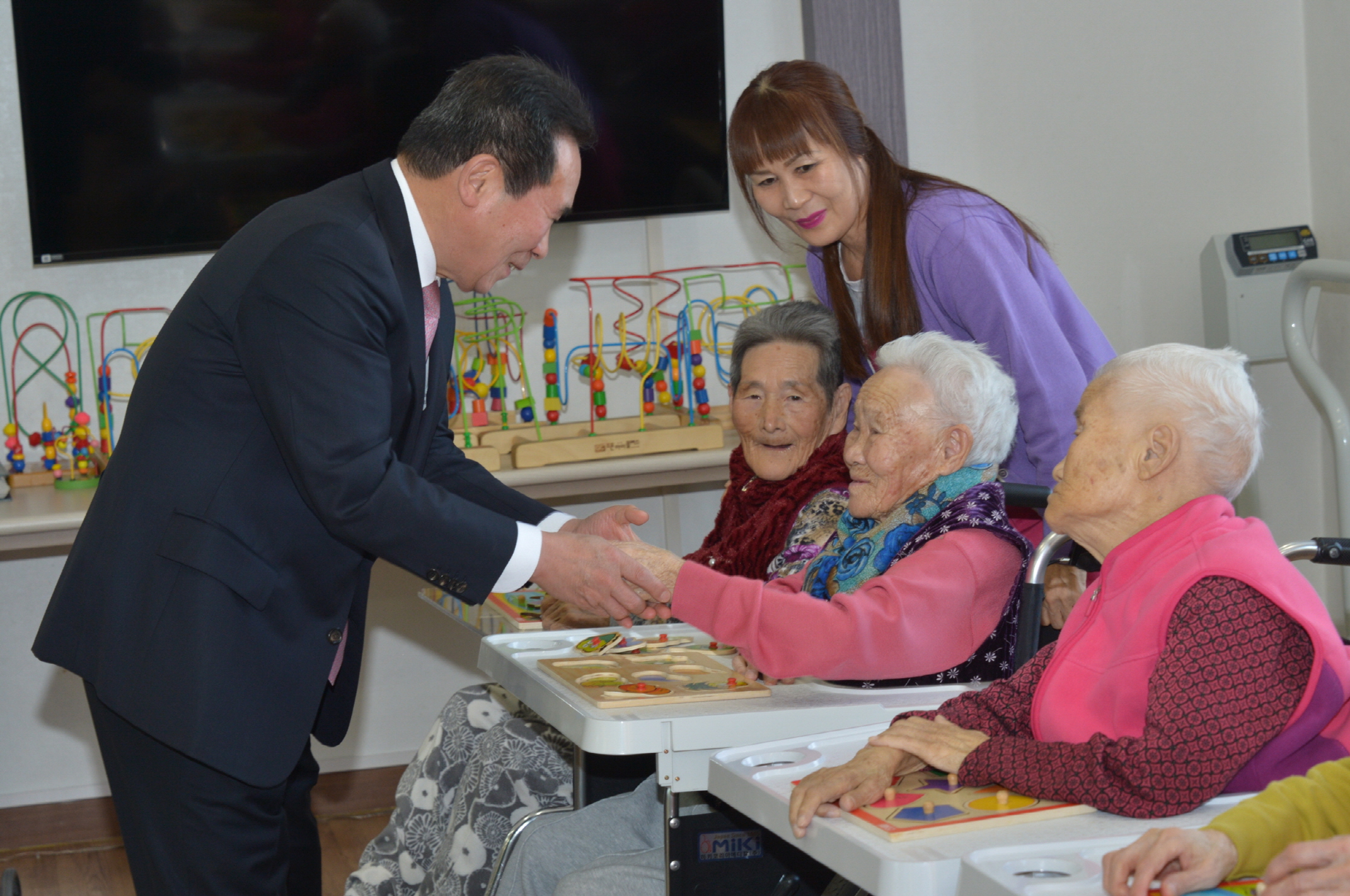 - 25일 황숙주 순창군수는 설명절을 앞둔 25일 관내 사회복지시설인 옥천요양원과 순창군 노인전문요양원을 찾아 따뜻한 설명절이 되도록 입소어르신들을 위로하고 직원들을 격려했다. -2017년 1월 25일-