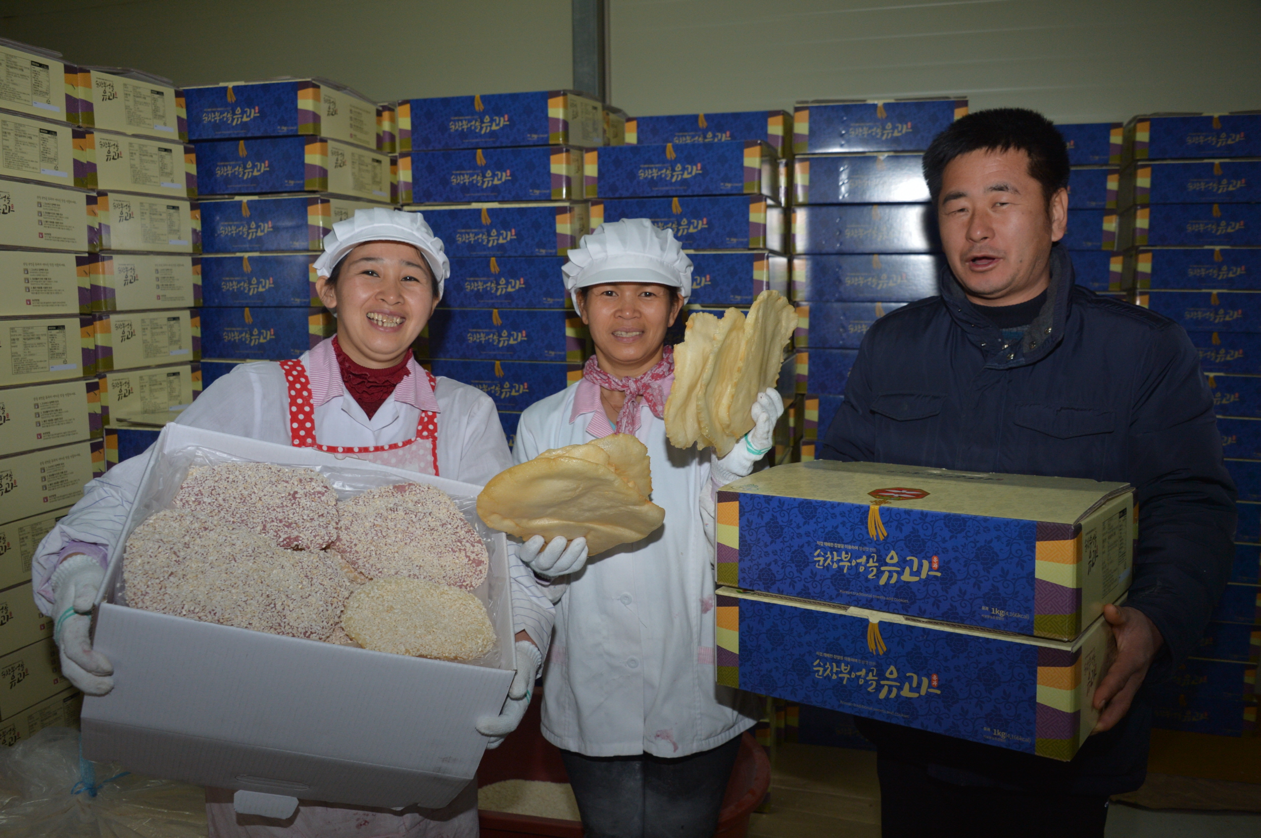 - 복흥면 석보마을 부엉골 석보 영농조합에서는 순창쌀로 만든 전통유과를 다가오는 설 명절에 판매를 목표로 두 달 동안 4,000박스를 만들었다. 작은 박스에는 14-16개가 들어있는데 16,000원, 큰 박스에는 28-32개에 30,000원 팔고 있다.