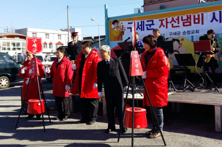 - 6일 구세군순창교회에서는 순창전통시장 버스터미널 앞에서 2016년 구세군 자선냄비 시종식을 갖고 본격 모금에 나섰다. 이날 황숙주 군수, 순창교육지원청 김용군 교육장, 김재옥 팔덕교회 목사, 등이 참석한 가운데 순창국악원 농악단의 축하공연에 이어 이혁동 담임사관의 시종선언이 있었다.구세군순창교회는 올해 12월 말까지 목표액은 지난해 830만원보다 많은 900만원으로 정하고 모금활동에 들어갔다. -2016.12.06-