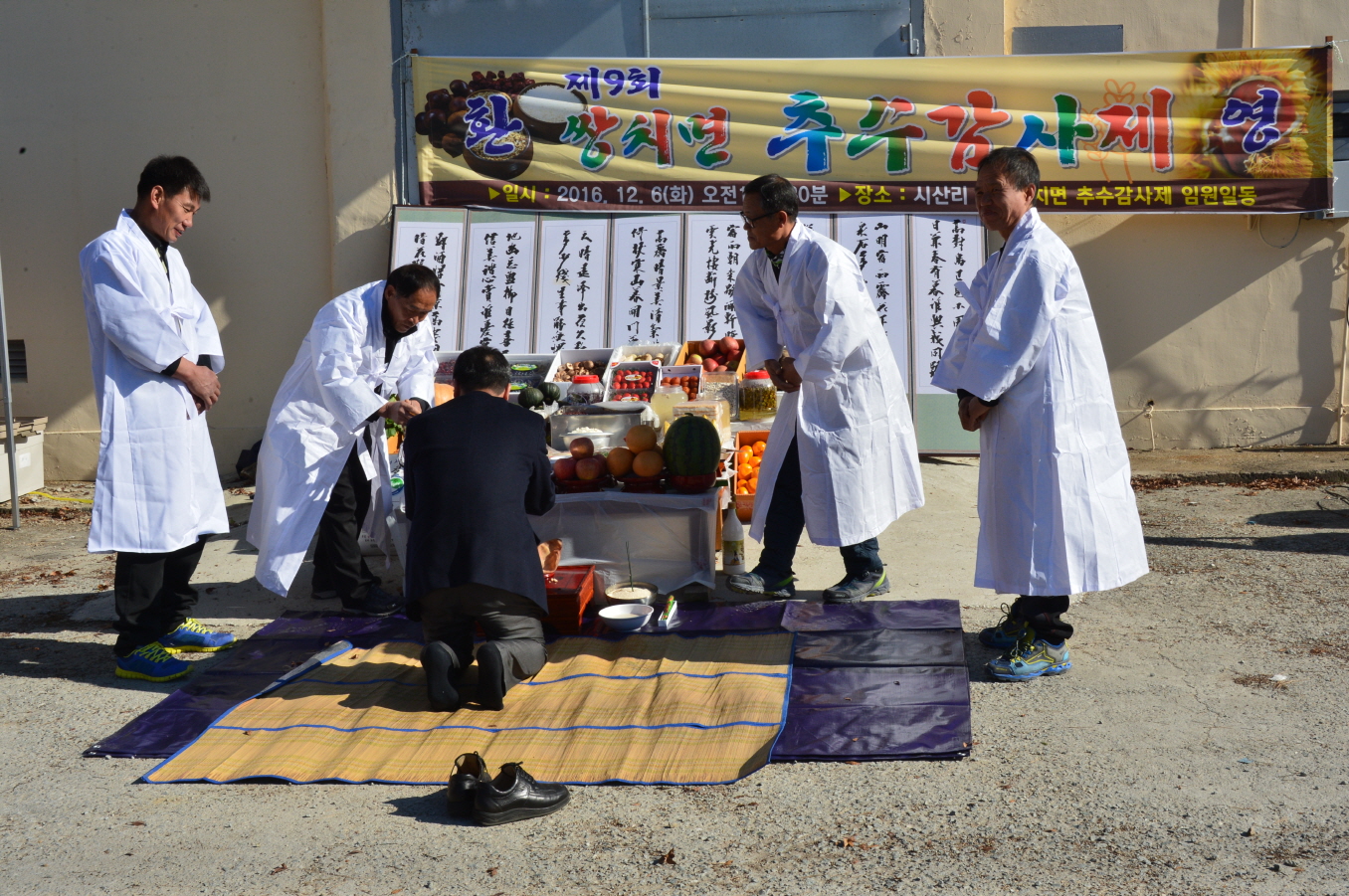 - 6일 제9회 쌍치면추수감사제가 쌍치 시산농협 창고앞 광장에서 황숙주 군수, 최영일도의원, 진영무 쌍치면장 및 각이장, 사회단체장 등 120여명이 참여한 가운데 열렸다.이날 올해 대풍에 감사하고 내년도 풍년을 기원하는 기원제와 각설이 기념식에 이어 쌍치면민의 화합과 친목을 다지기 위해 점심을 함께하였다. -2016.12.06-
