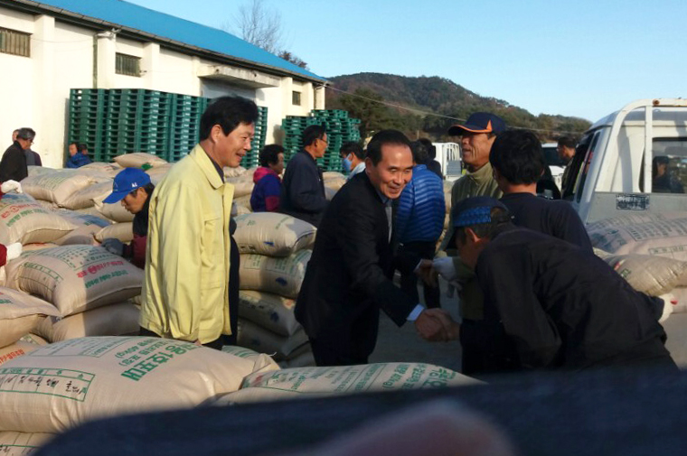 - 순창군이 지난 7일 적성면 고원28호 창고를 시작으로 공공비축미와 시장격리곡을 매입하고 있는 가운데 황숙주 순창군수가 15일 인계면 도룡창고, 풍산면 반월창고, 팔덕면 용산창고매입 현장을 찾아 유래 없는 쌀값 폭락으로 시름에 빠져있는 농가들을 격려했다.이번 공공비축미 및 시장격리고 매입은 이달 29일까지 진행되며 각 읍면별 정부양곡 보관창고 23개소에서 43회에 걸쳐 공공비축미와 시장격리곡 158,079가마(40kg)를 수매하게 된다.2016년 매입품종은 신동진과 새누리 2종류이며, 매입 당일 40kg 1가마당 특등품 46,480원, 1등품 45,000원을 농가에 지급하고, 수확기(10~12월) 산지 쌀값조사결과에 따라 최종 매입가격이 내년 1월 확정되면 차액을 정산할 예정이다. -2016.11.15-