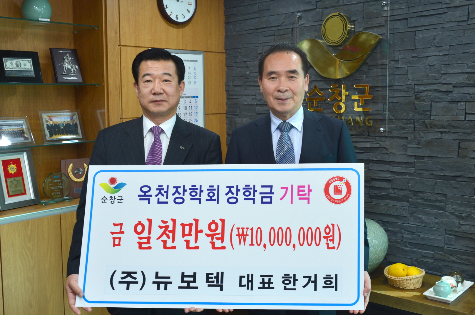 - (주)뉴보텍, (재)순창군옥천장학회에 장학금 1,000만원 기탁