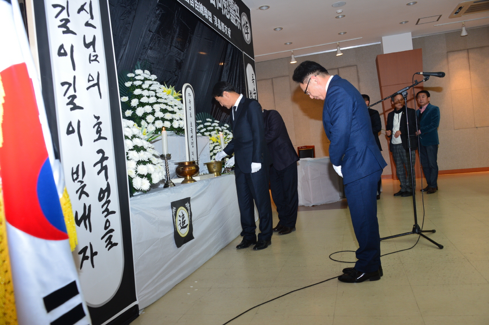 - 한국자유총연맹 순창군지회(지회장 설동찬)는 제77회 순국선열의 날을 맞아 17일 자유수호 희생자 합동위령제를 열었다.이날 순창문화의 집에서 신동원 순창부군수와 김종섭 군의장, 희생자 유가족, 회원 등 100여명이 참석해 엄숙하게 진행됐다. 강경우 목사의 봉독과 기도, 장덕사 청암스님의 독경에 이어 헌화와 분향이 이어졌다. -2016.11.17-