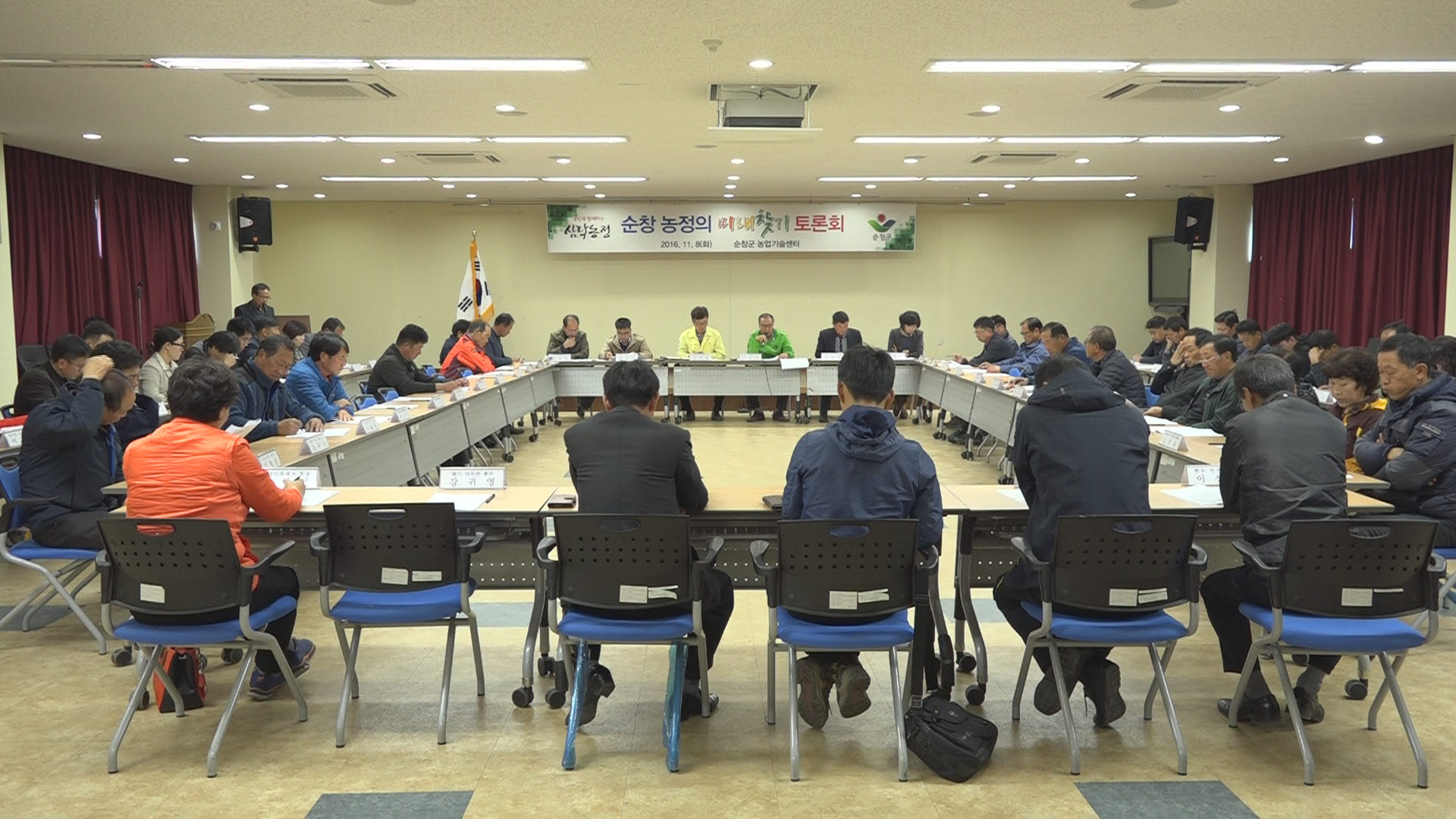 - 8일 농업기술센터 2층 회의실에서 농업인단체 및 작목반 대표와 농민, 농업관련 공무원 등 60여명이 참여해‘순창 농정의 미래 찾기 심층 토론회’를 진행했다. 이날 토론회는 이구연 농업기술센터 소장의 기조발언을 시작으로 농업의 환경 여건 및 2017년 순창 농정 추진방향 설명, 그리고 농업현안 및 농업발전 방향에 대해 자유롭게 토론하는 방식으로 진행됐다. -2016.11.08-