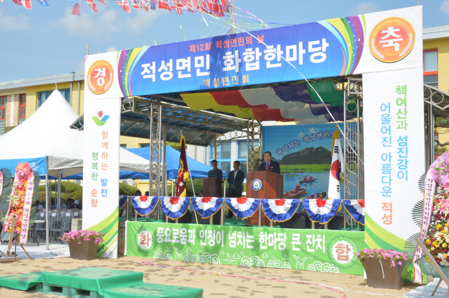 - 24일 제12회 적성면민의 날 행사가 적성초등학교에서 황숙주 군수, 김종섭 군의장, 최영일도의원, 최태귀 향우회장 및 향우, 면민 등 1천여명이 참여한 가운데 열렸다. 1부 기념식에 이어 2부에서는 다채로운 공연과 체육대회, 노래자랑을 하며 흥겨운 화합의 한마당 잔치가 되었다. -2016.09.26-