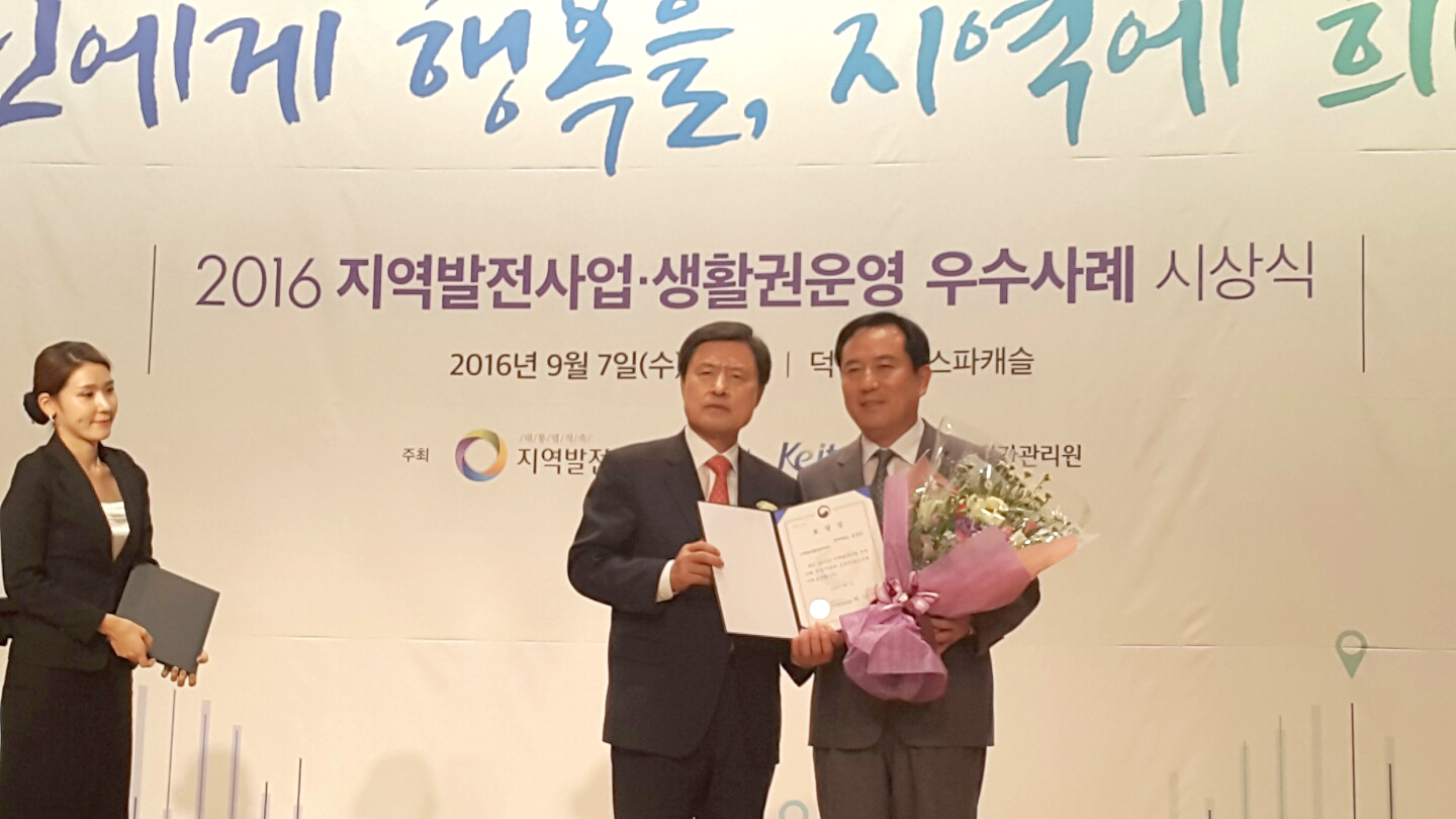 - 7일 대통령 직속 지역발전위원회(이하 지역위)주관으로 실시한 2016년 지역발전사업 우수사례 선정 에서 ‘맛의 한국 동서양 발효문화 체험연계 협력사업’이 우수사례로 선정되어 양동엽 기획실장이 순창군 기관표창을 받았다.이번 지역발전사업의 평가는 국가균형발전특별법에 근거 전국 109개 선도사업을 대상으로 해 지난 4월부터 대면평가, 실태조사 등을 거쳐 최종 13개 사업을 우수사례로 선정되고 내년도 재정 인센티브도 받게 됐다. -2016.09.07-
