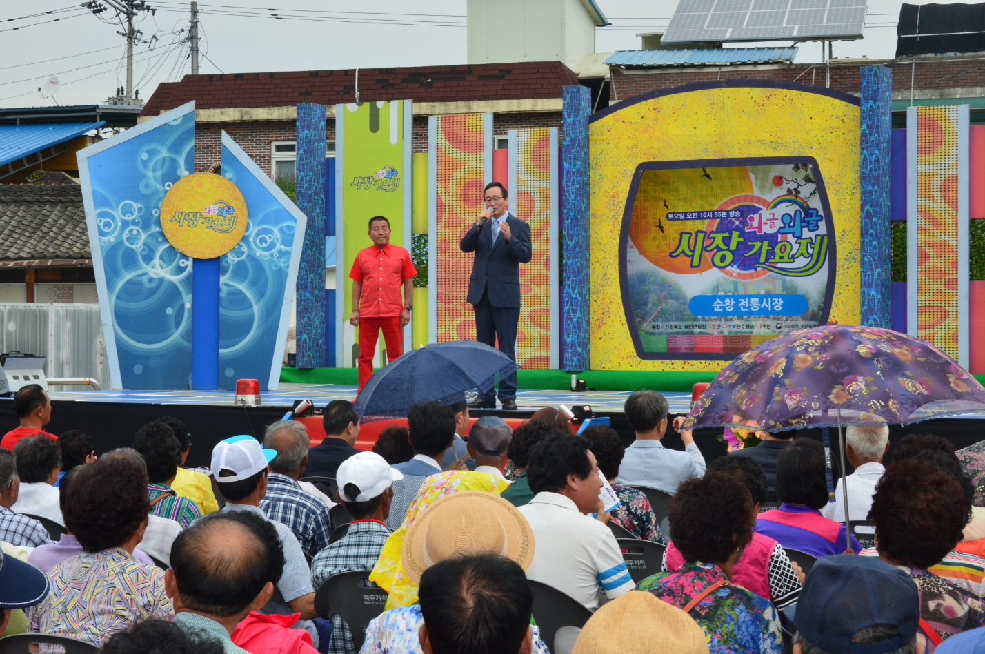 - 6일 순창전통시장에서는 전북상인연합회와 순창전통시장 상인회가 주최한 ‘와글와글’ 시장가요제가 송하진 도지사, 황숙주 순창군수, 김종섭 군의회 의장, 최영일 도의원 등 주요 인사들이 참석한 가운데 진행됐다. 이날 와글와글 가요제에는 인기가수 박상철과 박구윤, 최서희 , 양용모씨의 축하무대와 순창군민들의 노래자랑이 진행돼 순창전통시장에 열기가 더해졌다. -2016.09.06-