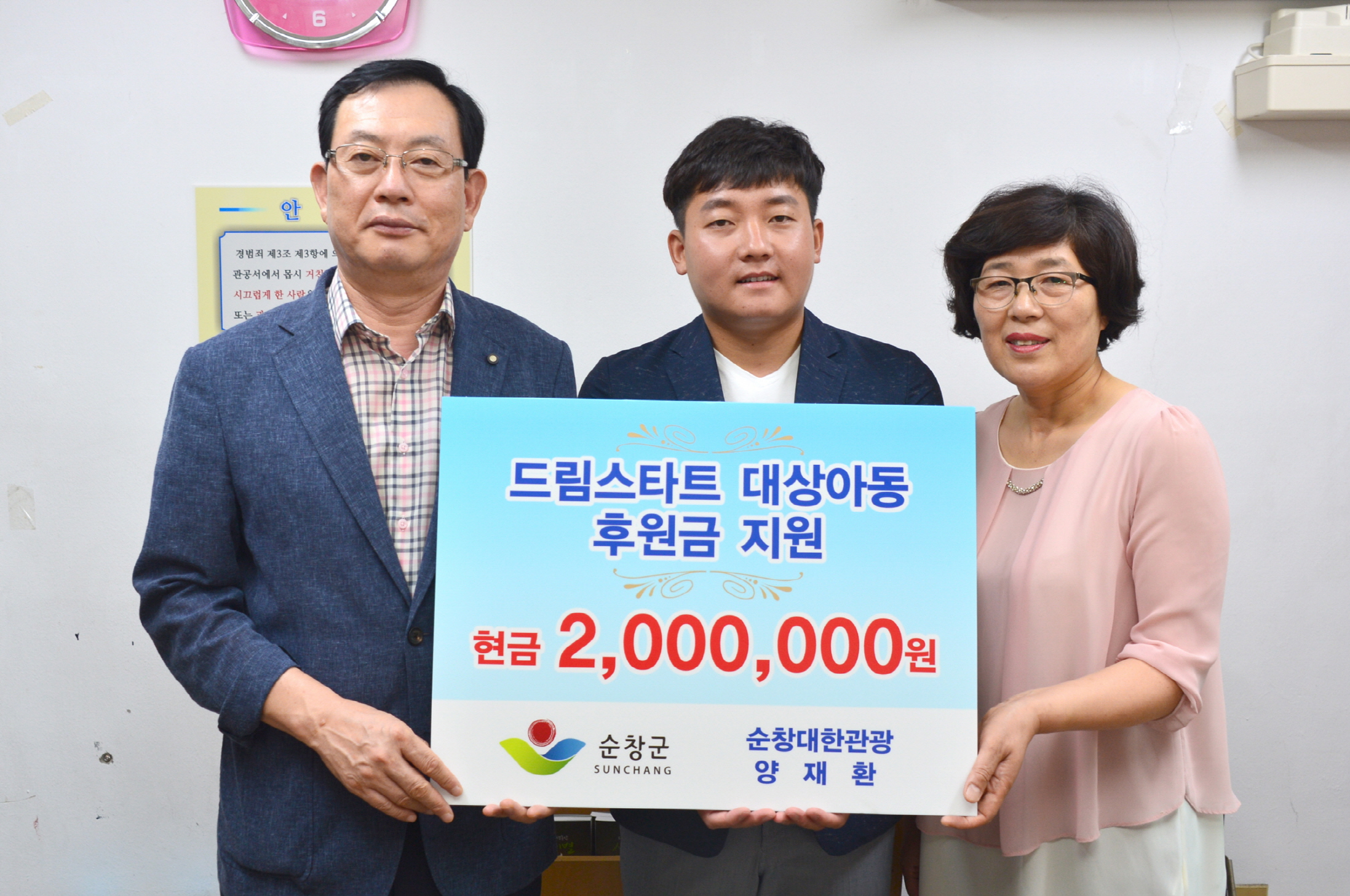 - 순창대한관광(대표 양재환)은 17일 생활이 어려운 드림스타트 대상 아동에게 써달라고 후원금 200만원을 쾌척했다양재환씨는〝더블어 살아가는 행복한 지역사회가 되는데 도움이 되길 바란다며 〃앞으로도 아이들이 건강하게 성장할수 있도록 이웃사랑 실천에 솔선수범 하겠다 라고 말했다 이번 후원금은 전북 사회복지 공동모금회 지정기탁 절차를 통해 경제적으로 생활이 어려운 드림스타트 대상아동 20명에게 지원될 예정이다. -2016.08.17-