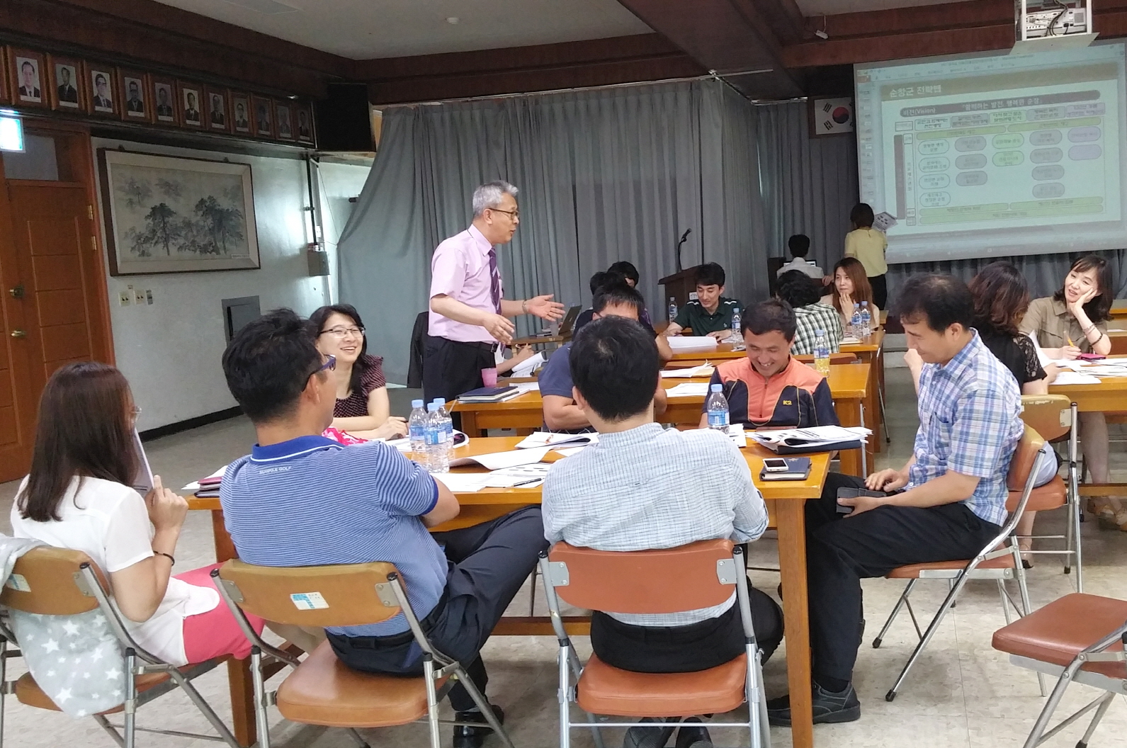- 군은 군정의 효율적인 성과관리를 위해 올해부터 BSC 성과관리제도를 도입하기로 한 가운데 5일 내부직원 워크숍을 진행했다.이날 군청 회의실에 모인 직원 30여명은 전문가와 함께 성과관리를 체계화하기 위하여 필요한 절차 및 비전을 구체화시키는 방법 등에 대한 전문가 컨설팅과 분임토의를 통하여 군의 전략맵을 수정하고 재구성하는 등 군정목표를 체계화시키는 시간을 가졌다. -2016. 07. 05-