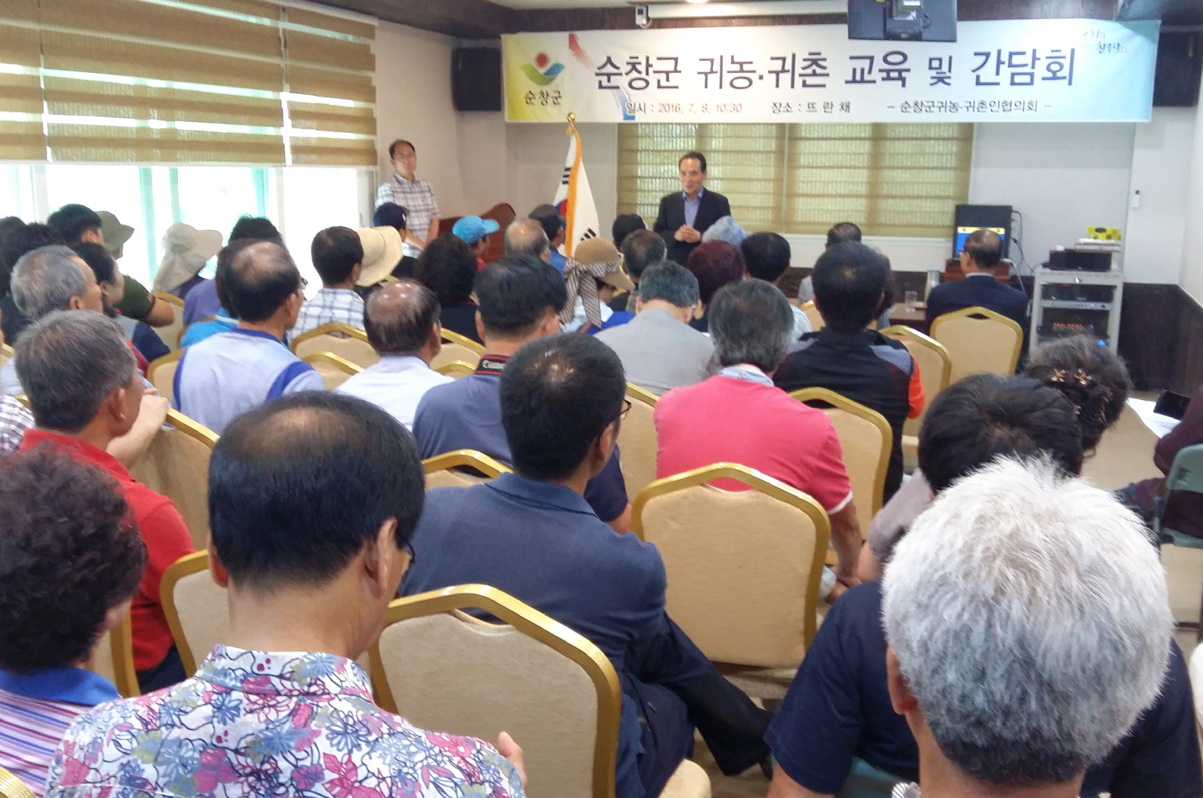 - 8일 귀농귀촌인이 지역에 성공적으로 정착할 수 있도록 도움을 주는 하는 간담회와 교육을 진행해 귀농인들의 호응을 얻었다.이날 간담회는 순창군 강천산캠핑리조트에서 진행됐으며 황숙주 군수를 비롯해 귀농귀촌인 가족 130여명이 참석했다.이번 간담회는 귀농․귀촌인들이 약용작물 재배 및 이용에 관한 교육과 주택 농경산림법 행정절차 이행에 대한 교육, 순창군 귀농귀촌 주요사업 추진 협의 등 귀농귀촌인들이 필요로 하는 다양한 정보를 제공했다. -2016. 07. 11-