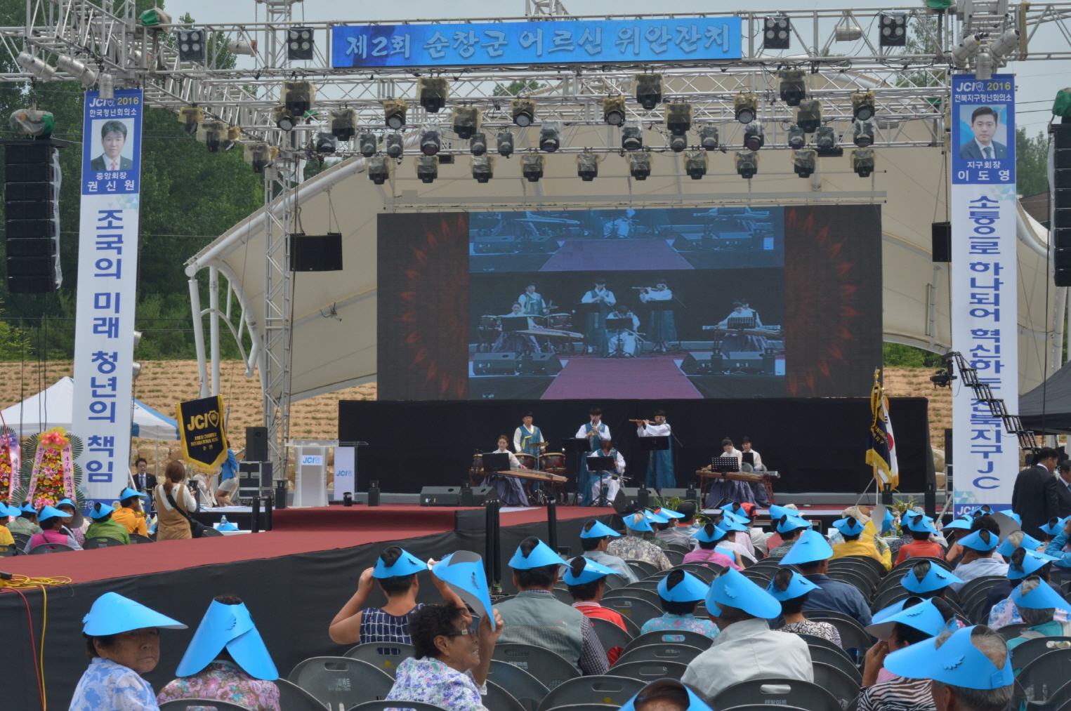 - 제47차 전북지구 JC회원대회 및 제2회 순창군 어르신 위안잔치가 11일 순창군 일품공원 성대하게 진행됐다.일품공원에서 진행된 제2회 순창군 어르신 위안잔치는 순창청년회의소가 주최한 행사로 천여명의 지역 어르신들과 자원봉사자들이 함께 참석해 즐거운 한때를 보냈다. 특히 무료식사는 물론 품바민요공연, 백세인생 이애란, 안동역의 지성 등 인기가수의 공연도 펼쳐져 모처럼 어르신들이 마음껏 즐기며 기쁨을 만끽했다. 이날 행사에서는 이미용봉사 등 다양한 봉사행사도 진행돼 더욱 의미를 더했다. -2016. 06. 13-
