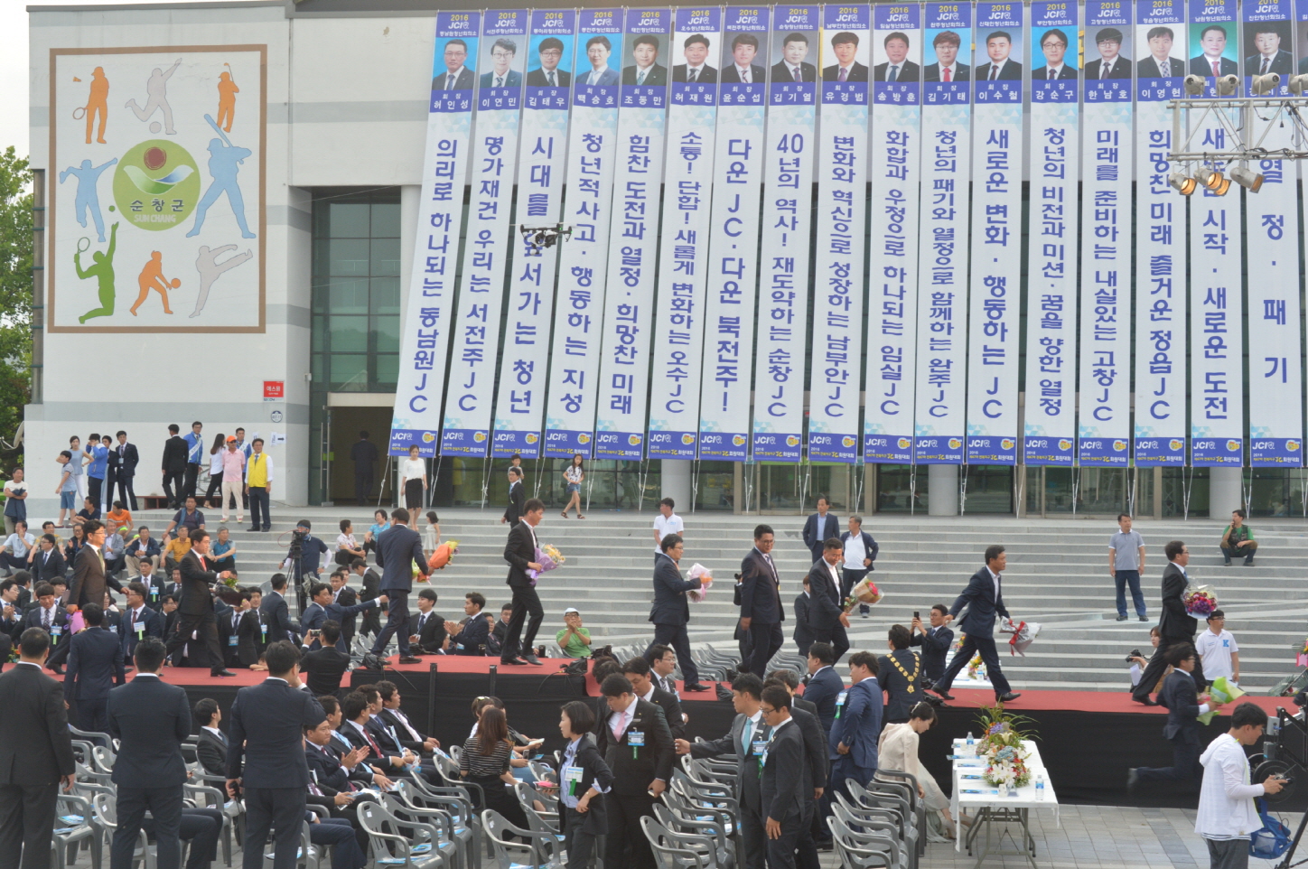 - 11일 일품공원에서 제47차 전북지구 JC회원대회가 전북지구청년회의소(회장 이도영)가 주최하고 순창청년회의소(회장 김기열)가 주관한 이날 회원대회는 황숙주 순창군수와 이기자 순창군의회의장, 전북지역에서 모인 JC회원 및 가족 천여명이 참석해 대 성황을 이뤘다. 이날 행사에서는 '소통으로 하나되어 혁신하는 전북지구JC'슬로건처럼 회원들이 상호 소통하며 봉사를 통한 나눔 사회 실천을 다짐하는 뜻 깊은 자리가 됐다. -2016. 06. 13-