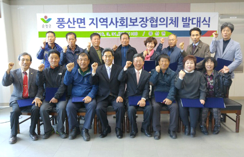- 풍산면에서는 31일 지역사회보장협의체 발대식이 17명의 위원들과 관계자 20여명이 참석한 가운데 진행됐다. 풍산면 지역사회보장협의체는 지역 내의 사회보장대상자 발굴과 사회보장자원 발굴 및 연계, 지역보호체계 구축운영 등 관할 지역주민의 사회보장 증진에 대한 기능과 역할을 수행하게 된다. -2016. 03. 31-