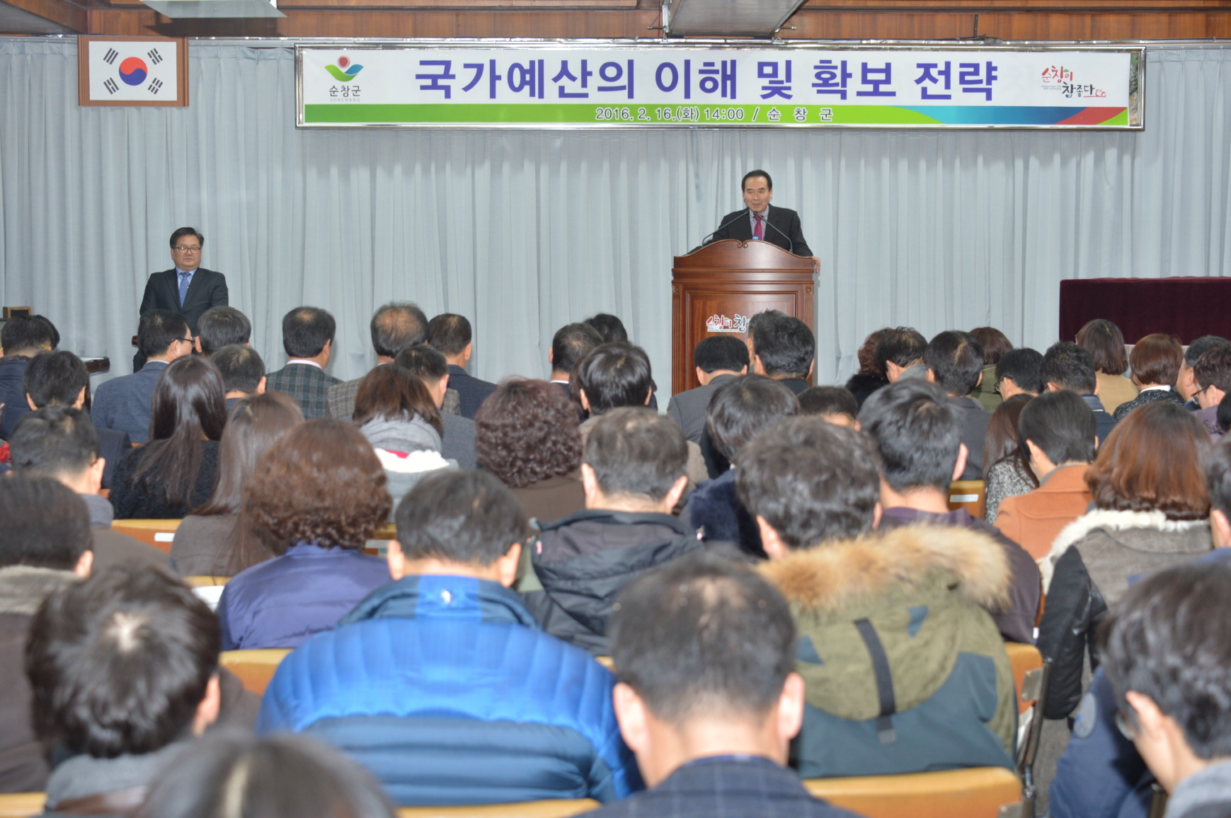 - 순창군은 국가예산 확보를 최우선 과제로 정하고 직원 역량강화를 위해 16일 박현규 전라북도 국가예산팀장을 초청해 ‘국가예산의 이해 및 확보 전략’을 주제로 교육을 진행했다. 군은 내년도 국가예산확보를 위한 사업발굴 목표를 100건 총사업비 5,500억 원으로 정하고 연초부터 사업발굴 보고회를 개최하는 등 발 빠르게 대처하고 있다. -2016. 02. 16-