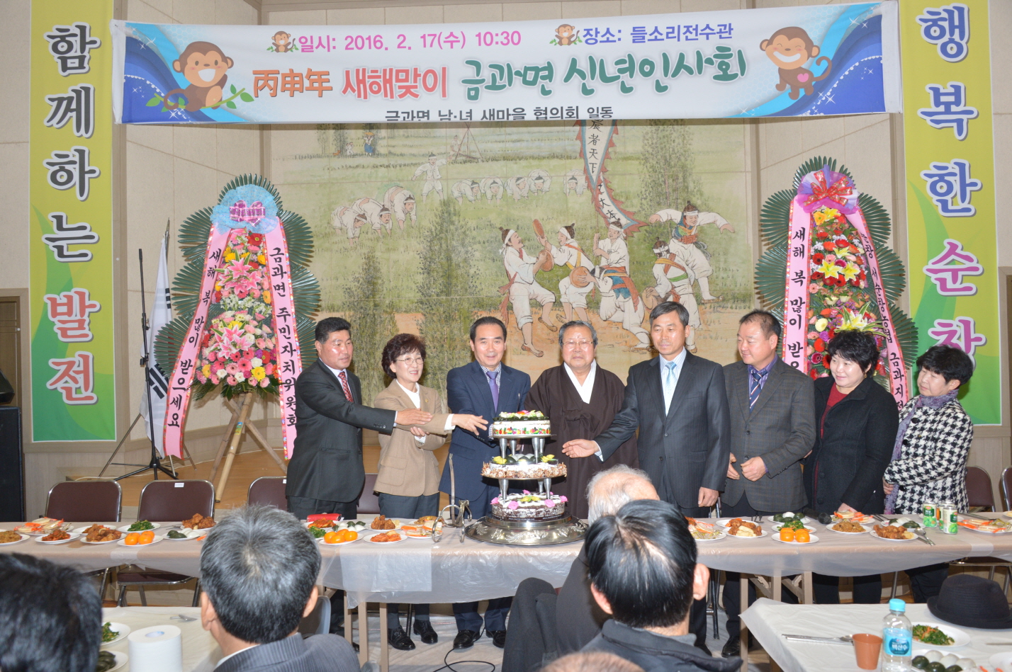 - 금과면 남·여 새마을 협의회가 주관한 신년인사회가 17일 금과들소리전수관에서 황숙주 군수, 이기자 군의회 의장과 군의회 의원 등 초청인사와 면민 등 200여명이 참석한 가운데 열렸다. -2016. 02. 17-