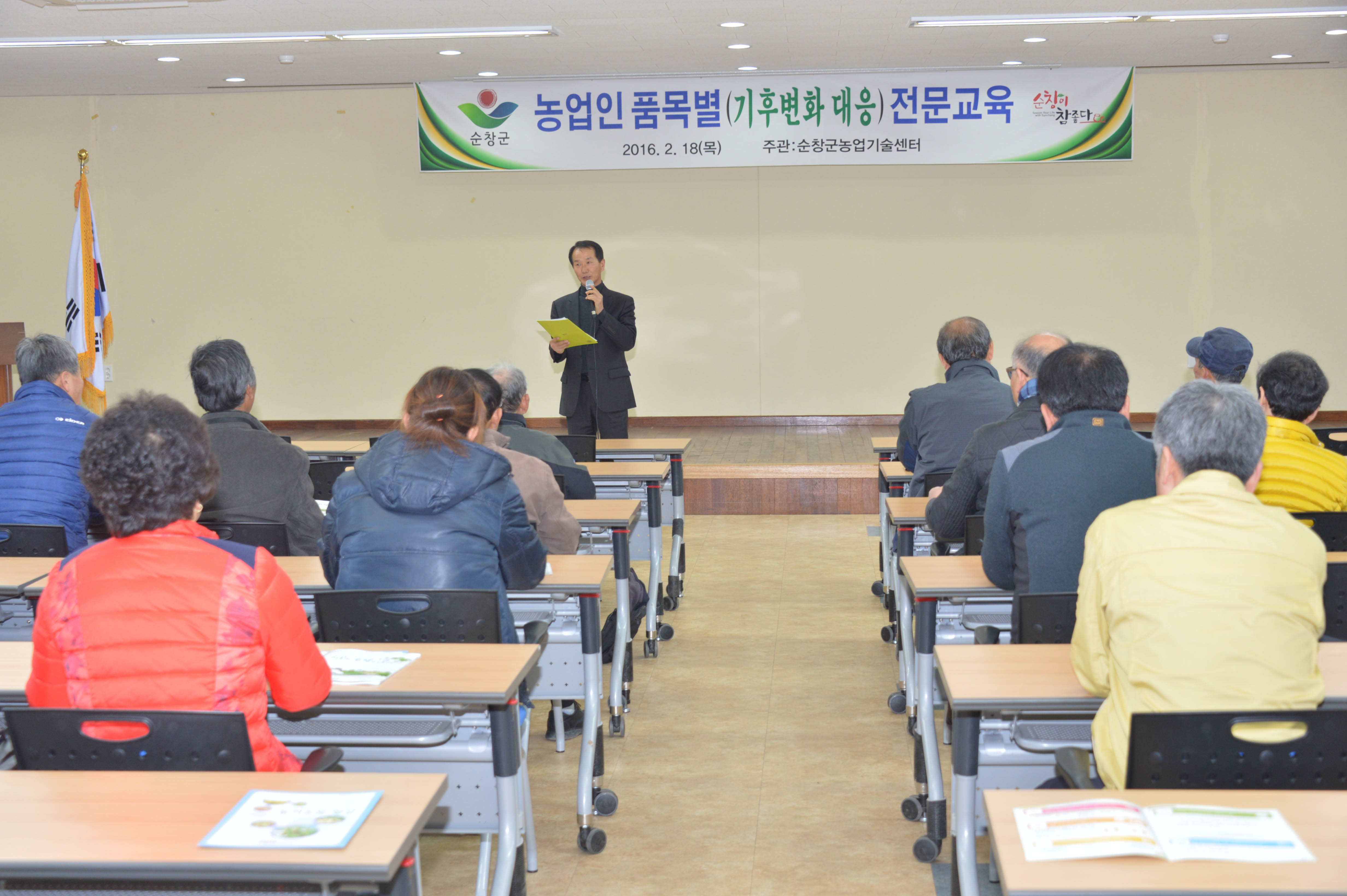 - 순창군이 농업환경 변화에 대처할 경쟁력 있는 농업인 육성을 위해 실시하는 농업인 실용 및 품목별 전문교육이 농업인들의 경쟁력 강화에 큰 도움을 주고 있다. 18일 농업기술센터 다목적강당에서 농업인 100여명을 대상으로 기후변화 대응을 주제로한 교육을 실시했다. 지난1월 13일부터 시작한 농업인 실용 교육은 딸기, 대추, 복숭아, 6차산업 등 8개 과정으로 260개마을 3000여명을 대상으로 농정시책 및 농업인 의식개선, 영농개선방안 등 다양한 주제로 25일까지 진행한다. -2016. 02. 18-