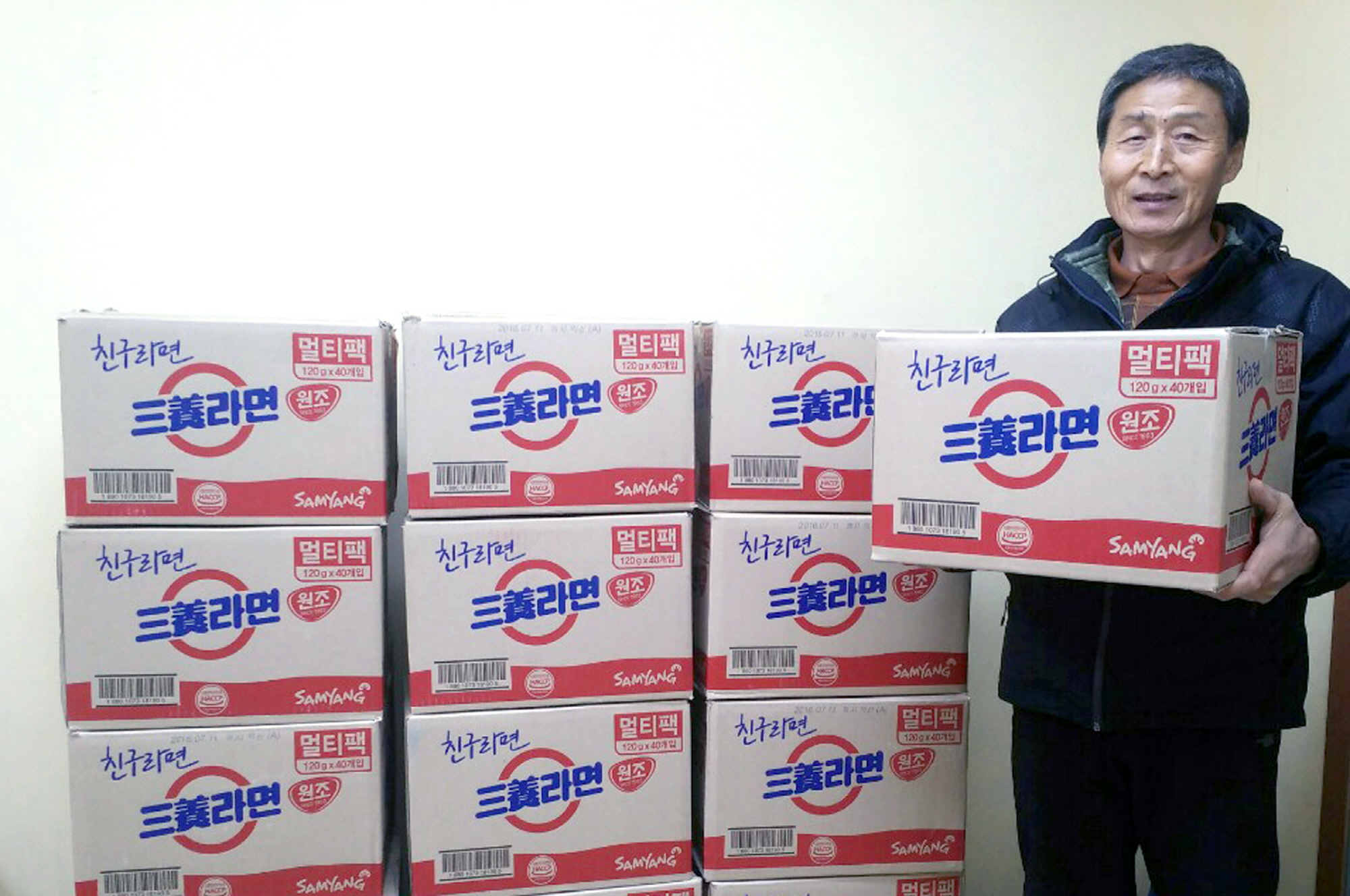 - 김철기씨, 장학금 100만원과 라면 기탁