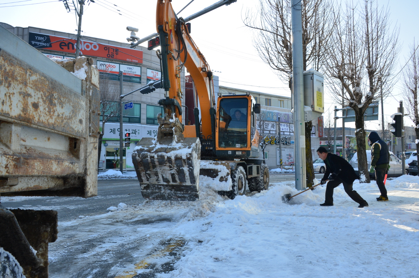 - 최근 순창지역에 평균 15.7cm의 적설량을 기록한 가운데 구림면 자율방재단40여명이 굴삭기 2대와 트랙터 2대 등 중장비를 동원해 구림면 소재지와 연산 치천방향 연산 화암방향 도로 제설 작업에 구슬땀을 흘렸다. -2016. 01. 26-