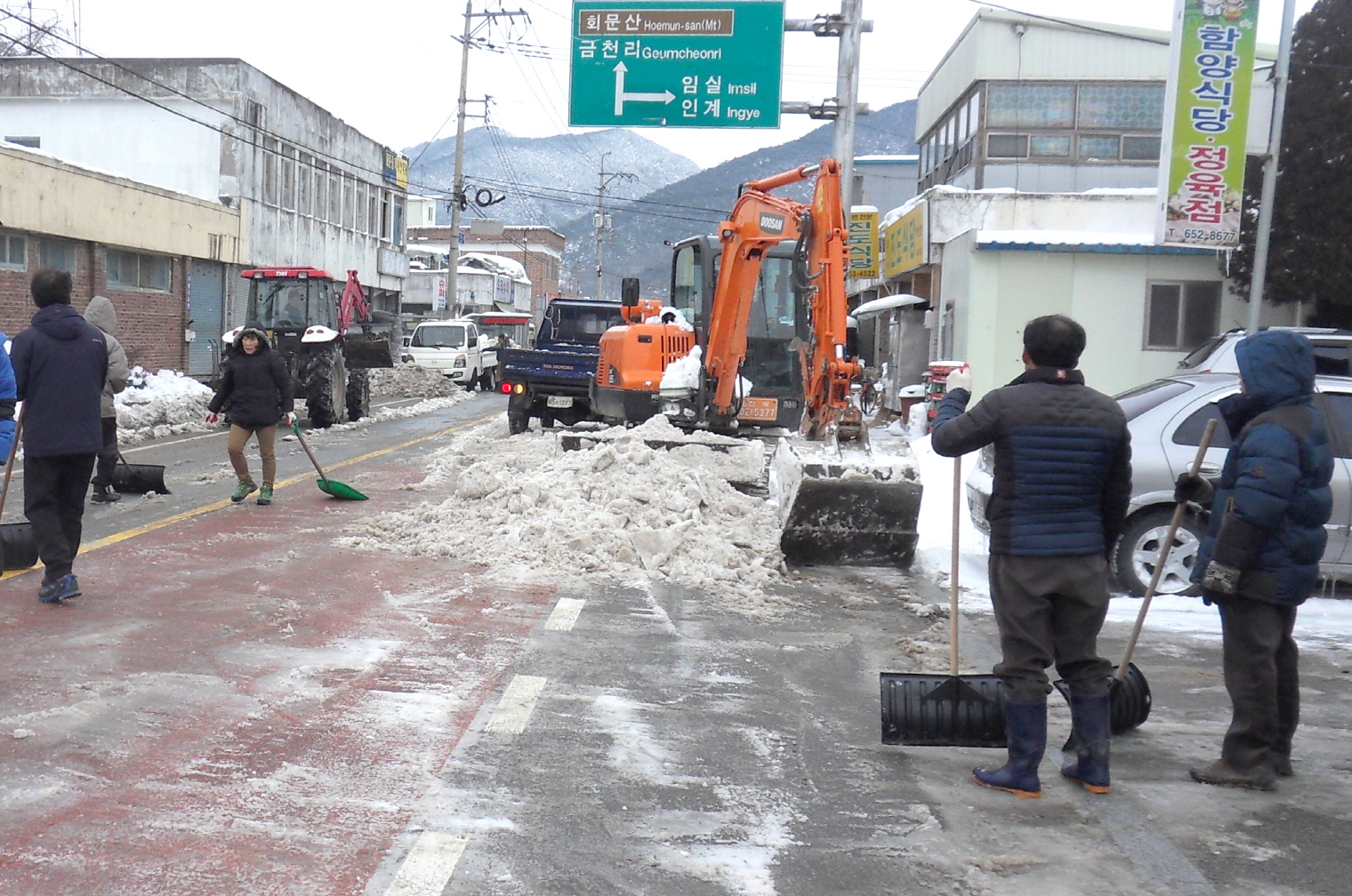 - 순창군 지역자율방재단은 25일 폭설 이후 읍면 방재단 별로 총 11회에 걸쳐 읍면 소재지 및 도로변에 쌓인 눈 제설작업을 실시했다. 특히 지역자율방재단 제설작업은 군이 차량 위주의 도로를 위주로 제설 작업을 실시하는데 비해 시장, 초등학교, 경로당 입구 등 주민들이 주로 이용하는 생활시설주변 제설작업을 실시해 호평을 받았다. -2016. 01. 26-