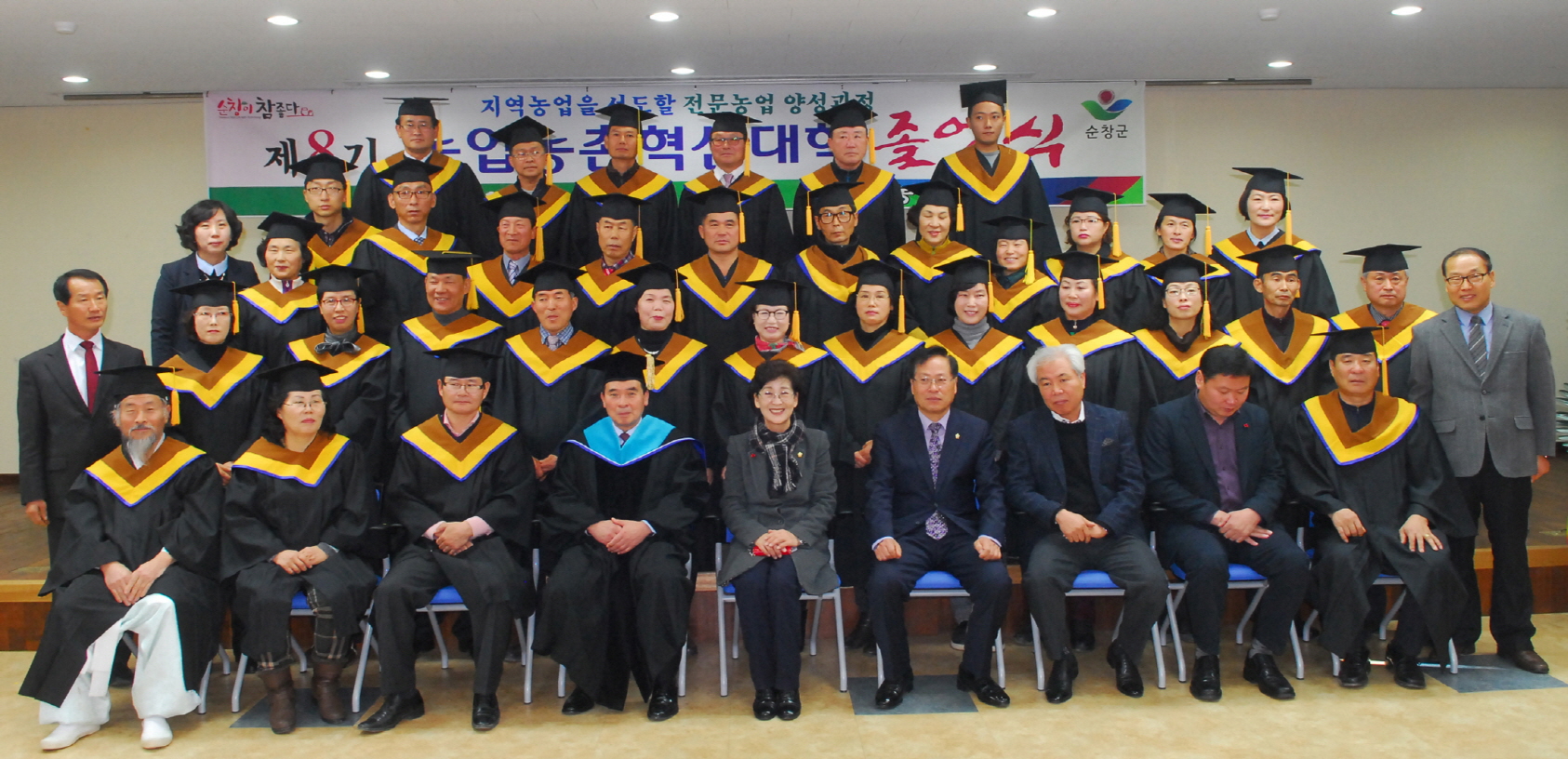 - 순창군이 지역 핵심인력 육성을 위해 추진하는 제8기 농업농촌 혁신대학 졸업식이 22일 농업기술센터 다목적 강당에서 황숙주 군수와 이기자 군의회 의장, 졸업생 37명을 비롯 관계자 100여명이 참석한 가운데 열렸다. -2015. 12. 22-