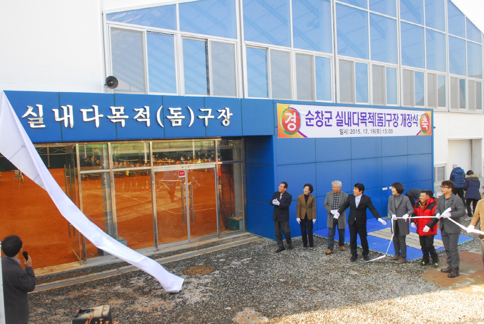 - 19일 실내다목적 돔 구장에서 진행된 개장식에는 황숙주 순창군수, 이기자 순창군의회 의장, 최영일 도의원, 테니스 정구동호 인 등 150여명이 참석한 가운데 순창 실내다목적 돔구장 개장식이 열렸다. 실내다목적 돔구장은 지난해부터 총 30억을 투입해 연면적 2,716.08㎡에 정규 실내코트 4면을 갖추어 기존 4면을 포함하면 총 8면에 실내코트장이 완성돼 4계절 테니스와, 정구 등의 경기를 치를 수 있게 됐다. -2015. 12. 21-
