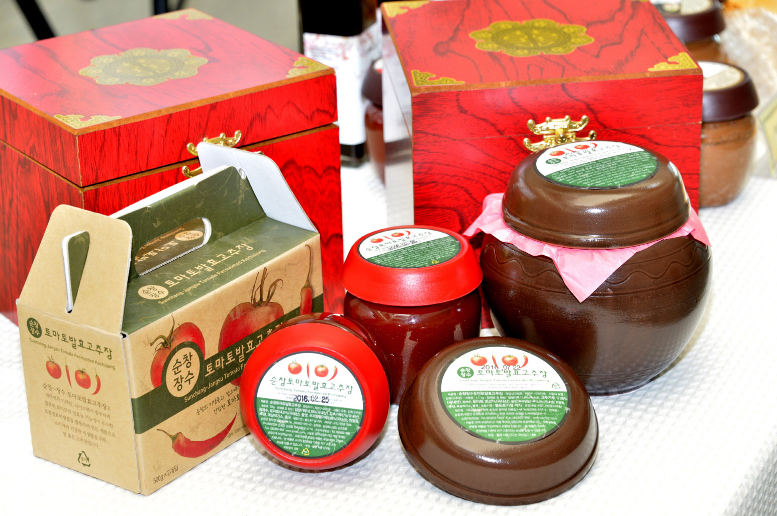 - 순창군이 개발한 순창발효토마토고추장이 네이버를 통해 최근 방송된 ‘함께해요! 라이브 쿠킹쇼’에서 많은 전문 쉐프들의 관심을 받았다. 이날 행사는 세간의 화제남인 오세득 쉐프와 스페인요리전문가인 민희선 쉐프를 비롯해 순창의 젊은 농부 김병수, 스페인유학생 등이 출연하여 네이버 TV 캐스트를 통해 1시간 40분 동안 전국에 생방송됐다. 주제는 스페인의 집밥 이었다. 이날 오세득쉐프는 순창발효토마토고추장과 순창에서 생산된 삼채, 우렁이 쌀 등을 이용해 스페인의 다양한 요리를 조리했고 1만 2천여 명의 시청자들이 댓글을 통해 관심을 나타냈다. -2015. 11. 30-