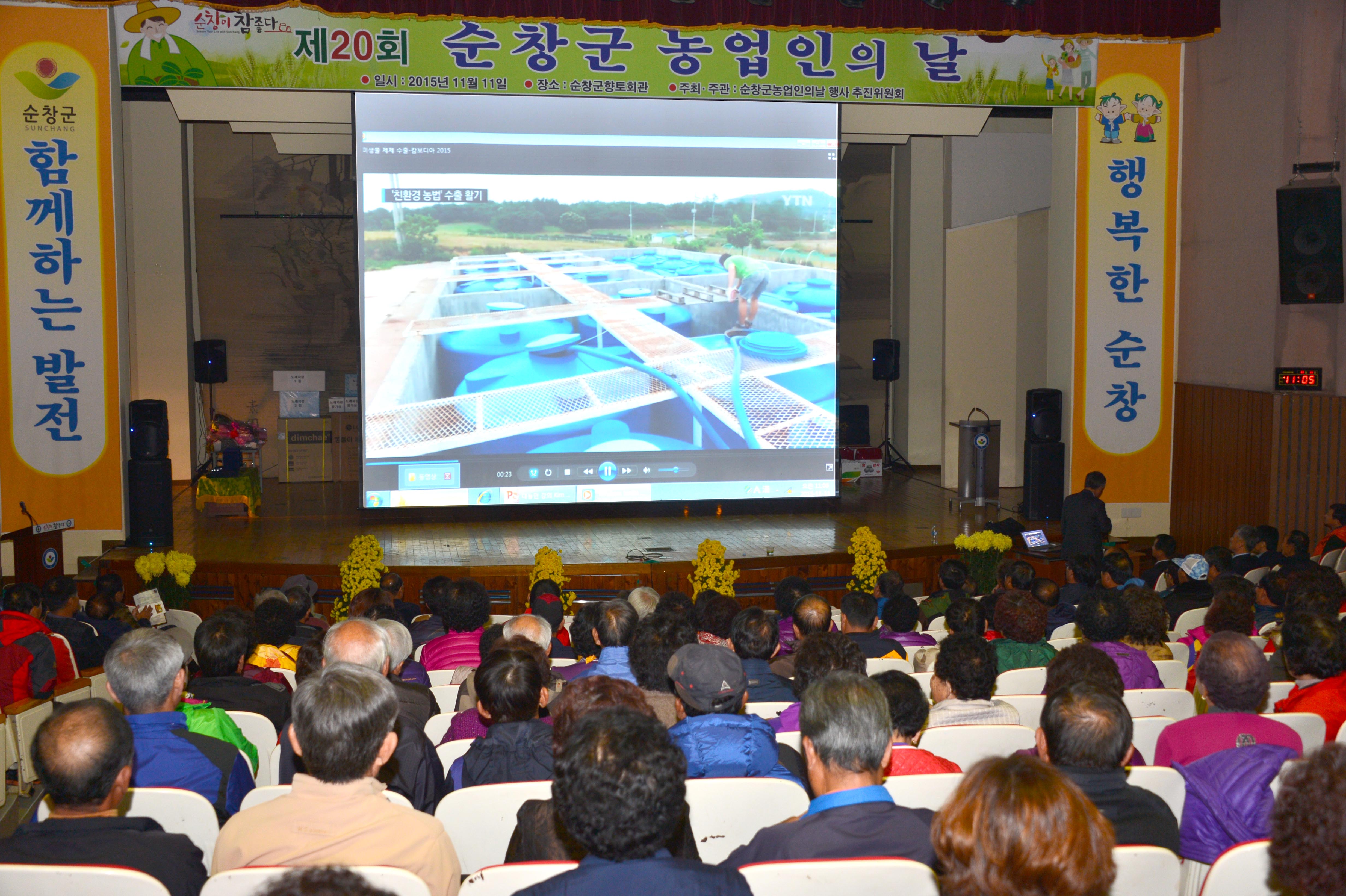 - 농업인들의 사기진작과 화합을 도모하기 위한 제20회 순창군 농업인의 날 행사가 11일 군민복지회관 향토관에서 열렸다. 이날 행사는 곽승기 부군수를 비롯해 이기자 군의회 의장, 최영일 도의원, 양영수 순창군 농업인의날 추진위원장을 비롯해 농민 900여명이 참석해 대성황을 이뤘다. -2015. 11. 11-