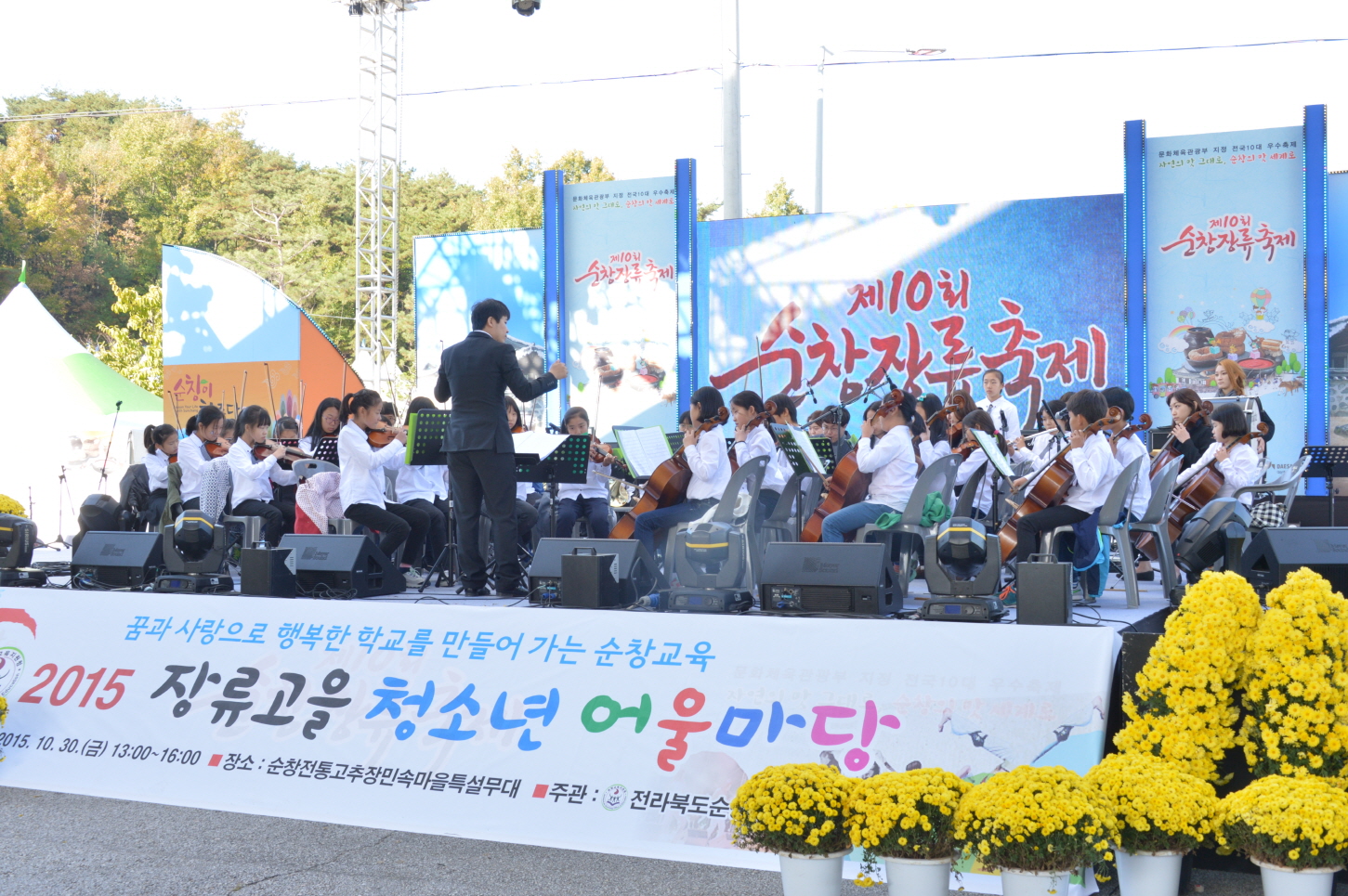 - 장류축제가 한창인 민속마을 주무대에서는 순창교육지원청(교육장 김용군)주관으로 유치원, 초중고등학생 800여명이 참여한 가운데 무용, 사물놀이, 댄스, 합주 등 장류고을 청소년 어울마당이 펼쳐졌다. -2015. 10. 30-