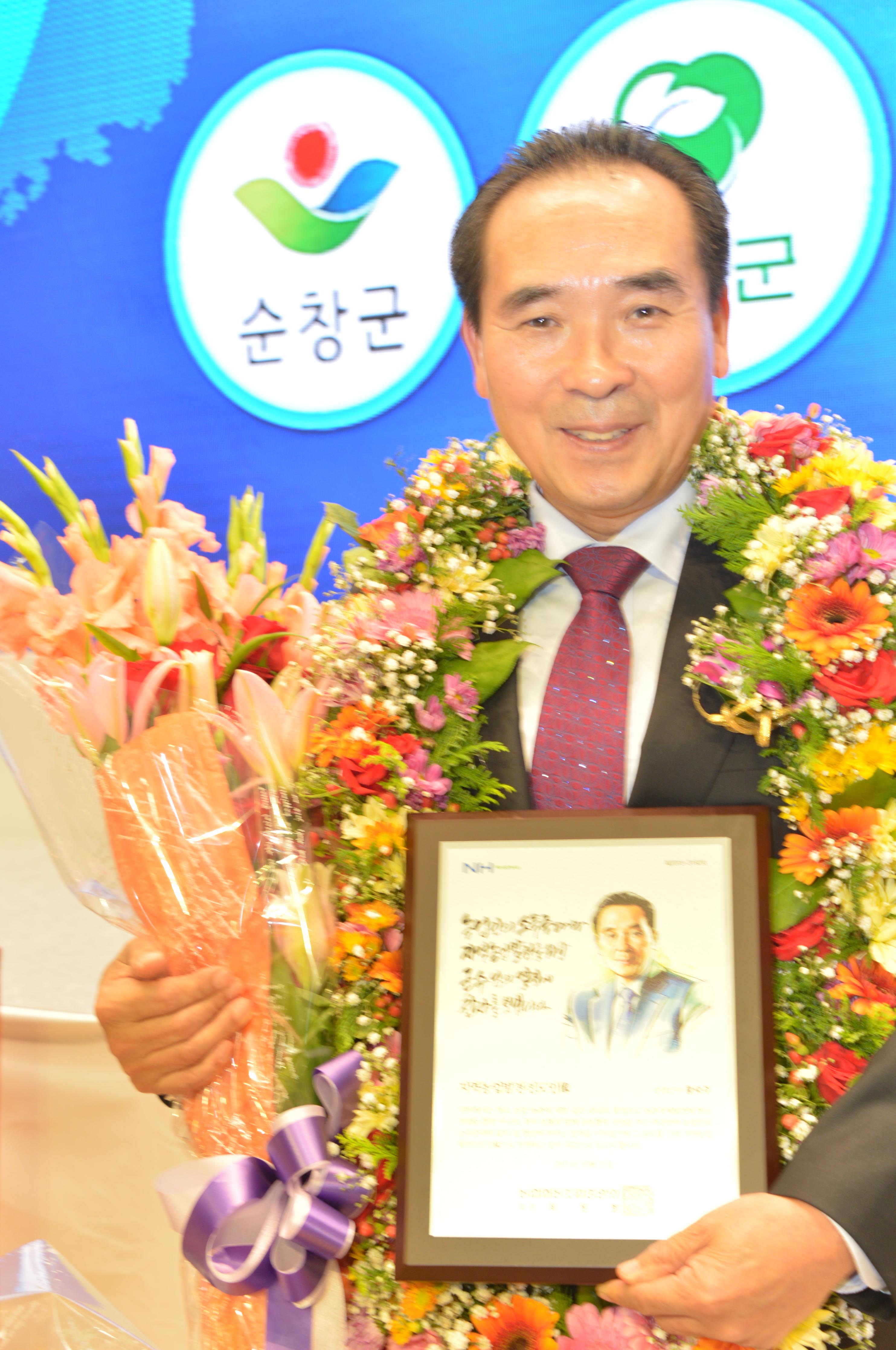 - 황숙주 순창군수가 15일 서울마포구 농협중앙회 본부 대강당에서 지역 농업발전에 기여한 공로를 인정받아 2015년 지역농업발전 선도인상을 수상했다. 지역농업발전 선도인상’은 농협중앙회가 전국 지자체들을 대상으로 지역농업과 농촌발전, 농업인의 삶의 질 향상에 기여한 지자체 10곳을 선정해 지방자치단체장에게 수여하는 상이다. -2015. 10. 15-