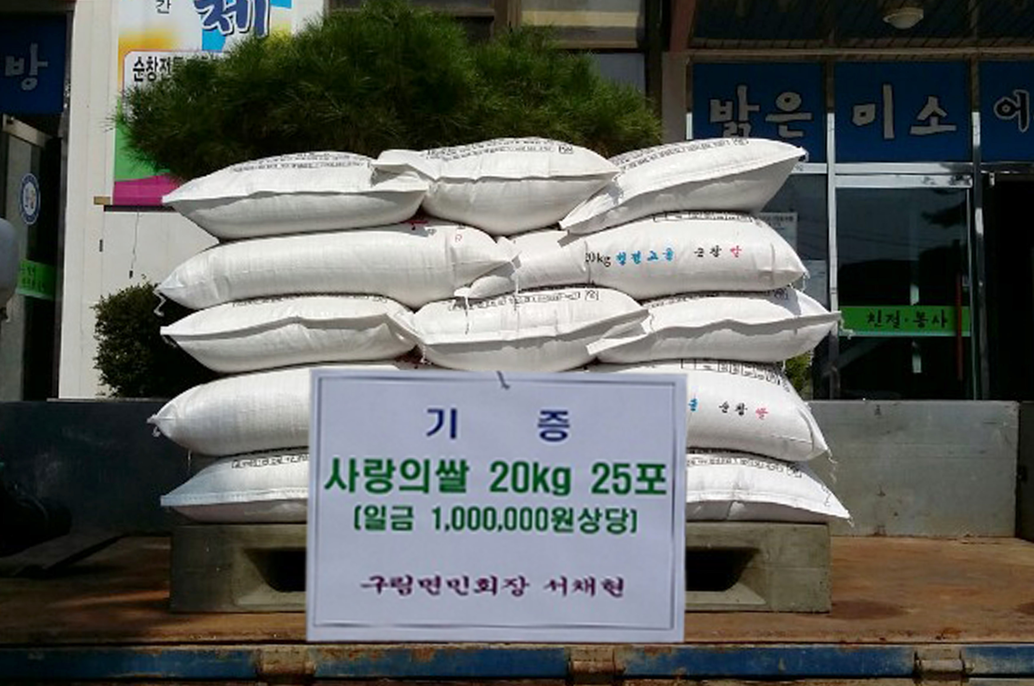 - 순창군 구림면민회장인 서채현씨는 21일 추석명절을 맞아 어르신들과 이웃들에게 따뜻한 이웃사랑의 정을 나누고자 강성언 면장을 찾아 2015년 햅쌀 20kg 25포(100만원 상당)를 전달했다. -2015. 9. 21-